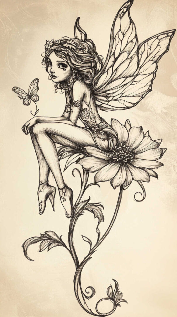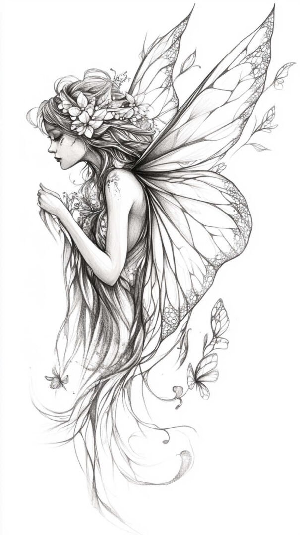 Fairy Tattoo Sketch 4K HD Designs