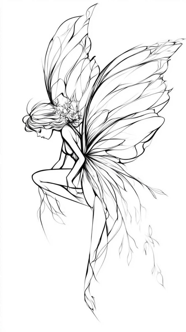 Minimalist and Fine-Line Fairy Sketches