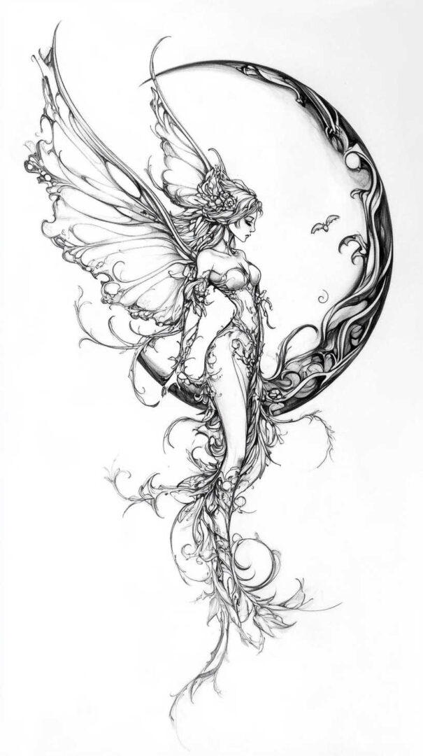 Shadowy fairies with tattered wings, thorny crowns, or skeletal accents convey duality—innocence with edge. Gothic styles use heavy shading, ravens, or moon phases for brooding elegance.