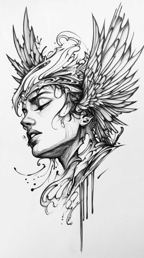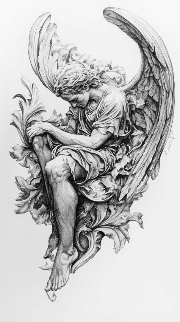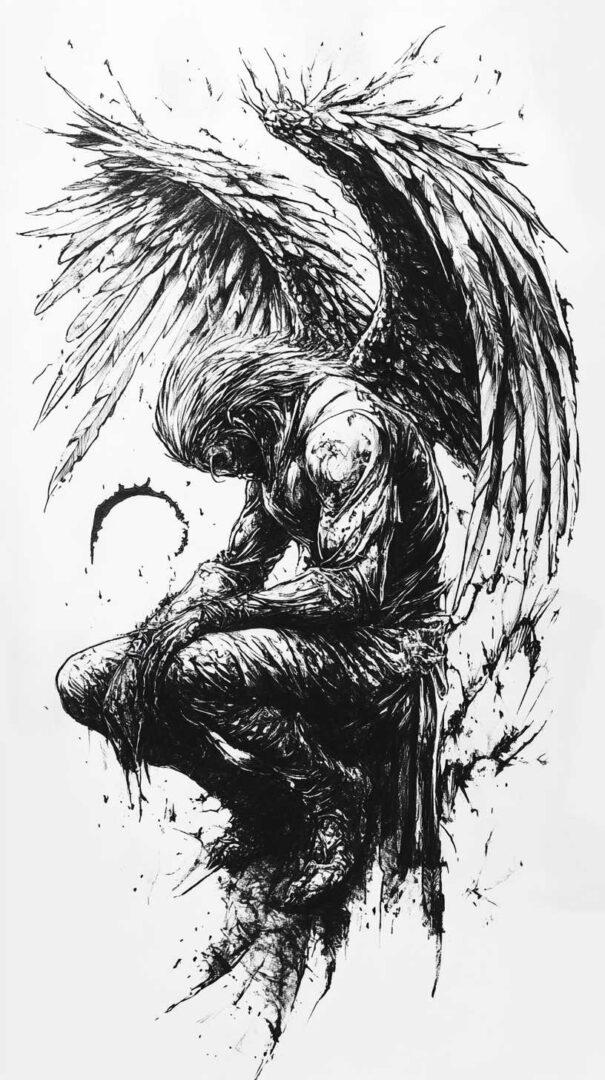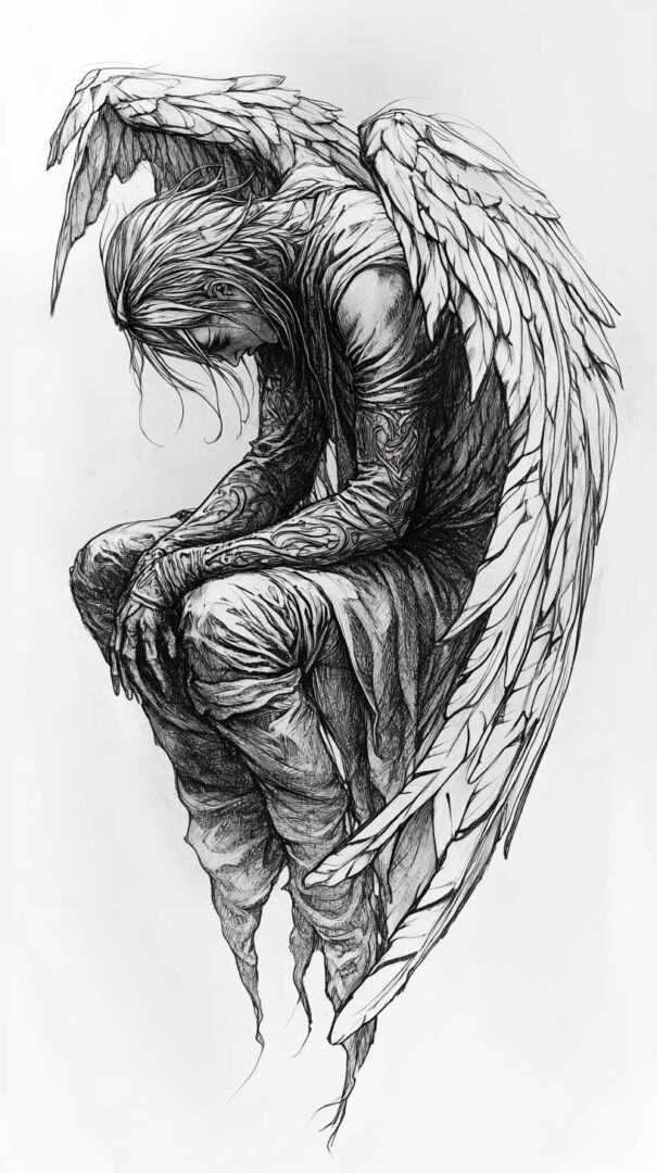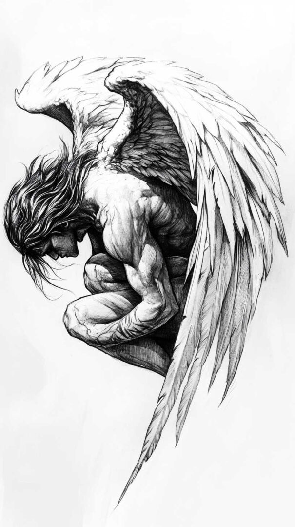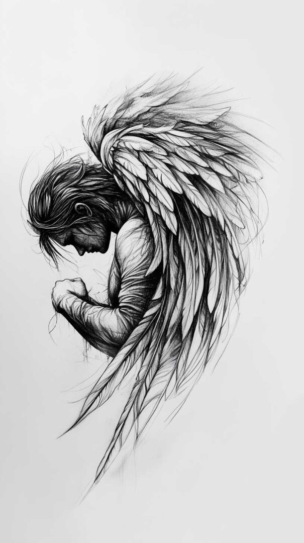 Fallen Angel Tattoo Sketch 4K HD Designs