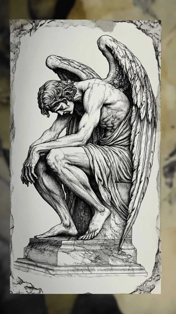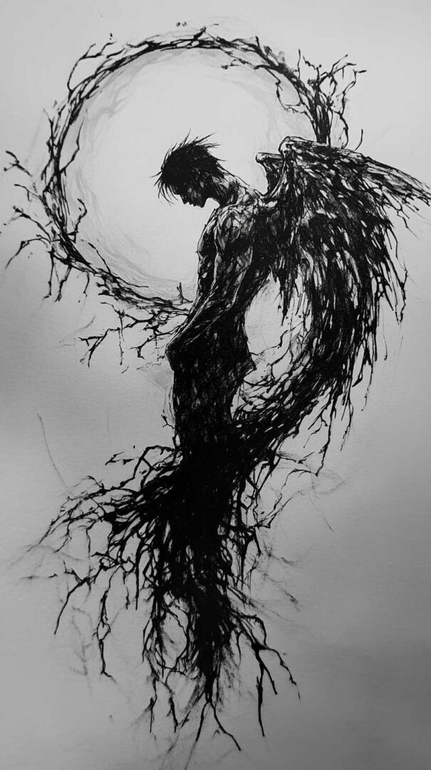 - Fallen Angel with Rose or Thorns — Beauty and pain of the fall.