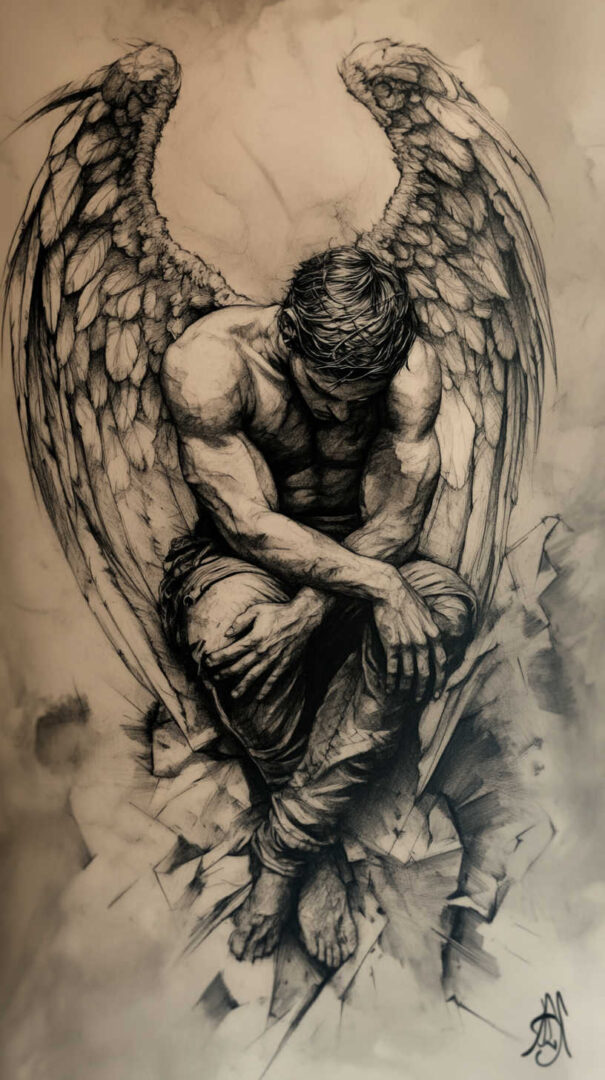 Fallen angel tattoo sketch designs in 4K HD channel rebellion, resilience, inner conflict, and hard-won redemption through majestic yet broken figures and symbolic depth. From sorrowful winged beings with cracked halos to defiant warriors rising from darkness, each sketch represents the courage to embrace the shadow and transform pain into power. Visualize meticulously in stunning detail, choose a fallen angel that reflects your own journey, and ink a design that stands as a bold testament to your strength, complexity, and unyielding spirit.