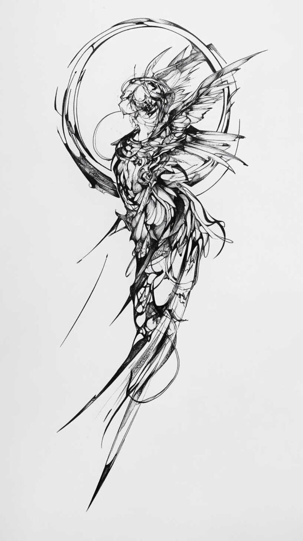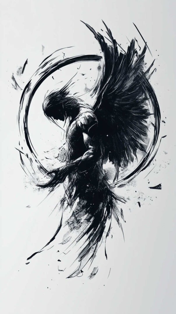 - Style Fusion — Realistic fallen angel with geometric patterns or traditional line art with modern shading.