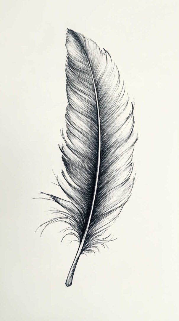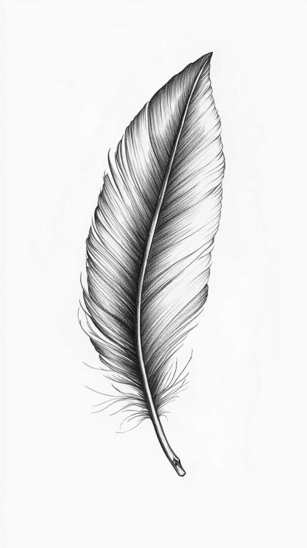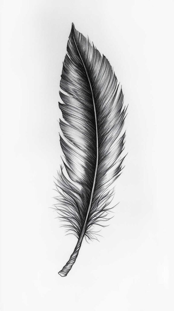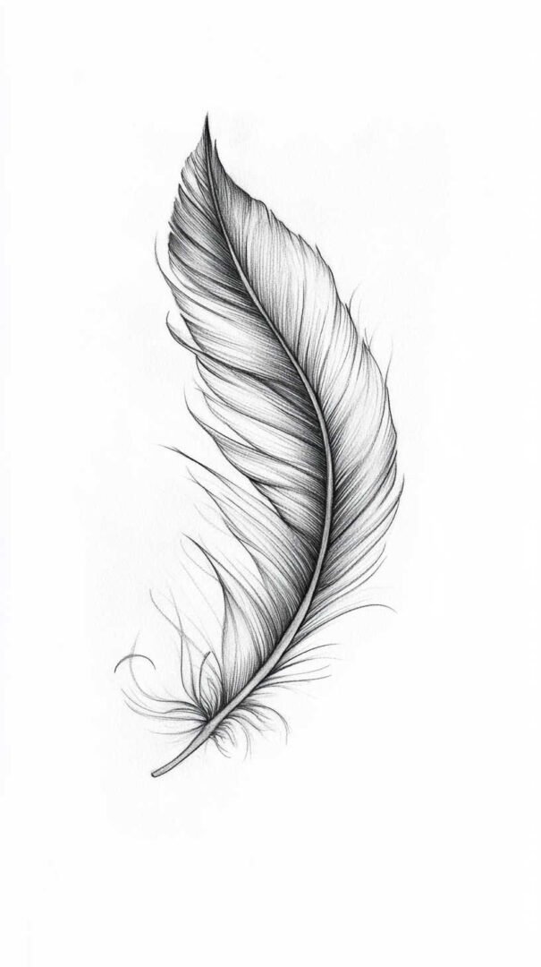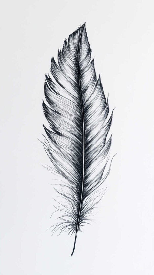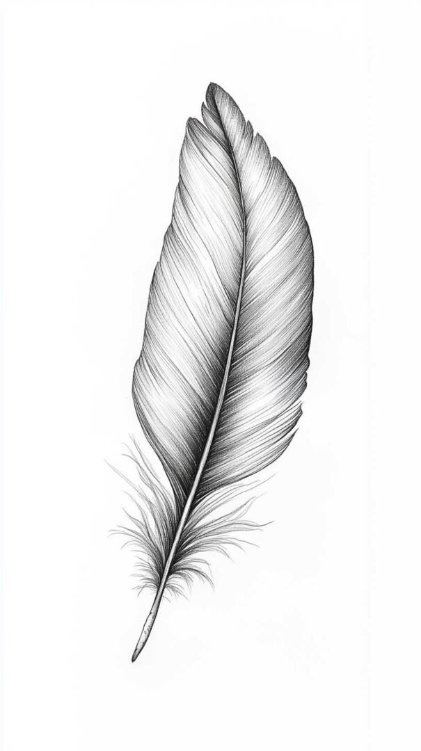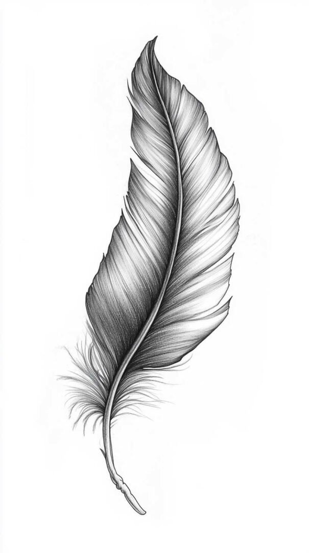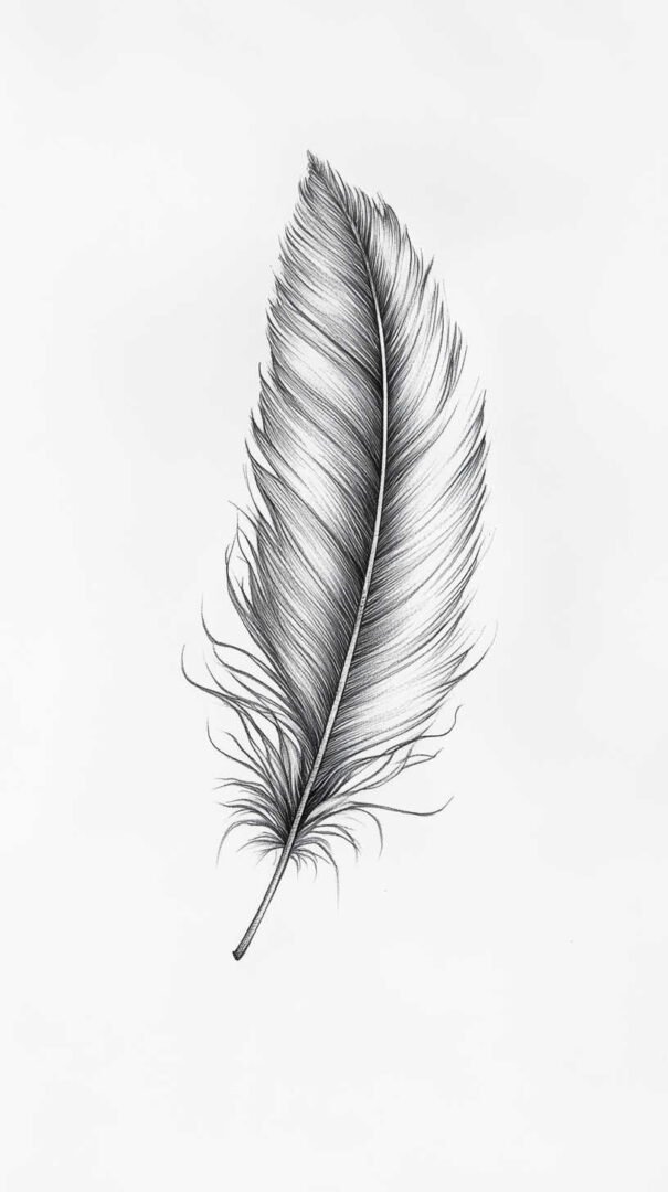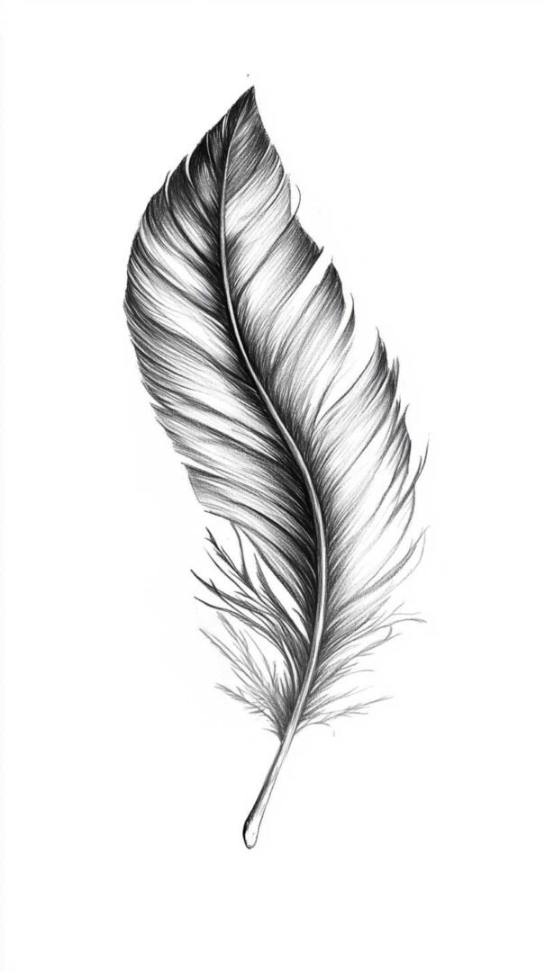 For bolder expressions, realistic feather sketches aim for photorealistic detail. These incorporate layered shading, individual barb rendering, and subtle color gradients (even in black-and-gray work) to mimic the natural iridescence of feathers. Every vane, rachis, and aftershaft receives careful attention, resulting in a three-dimensional effect that pops in high-resolution formats. Such sketches suit those seeking lifelike artistry that honors the feather’s organic beauty.
