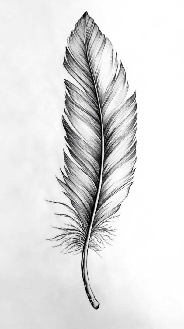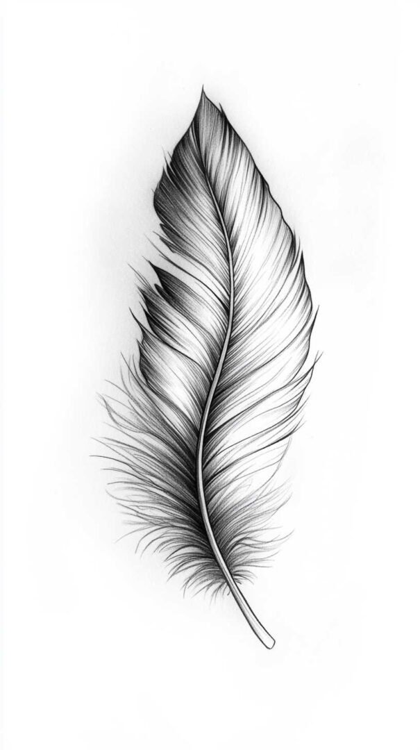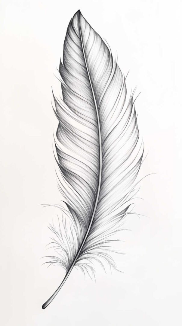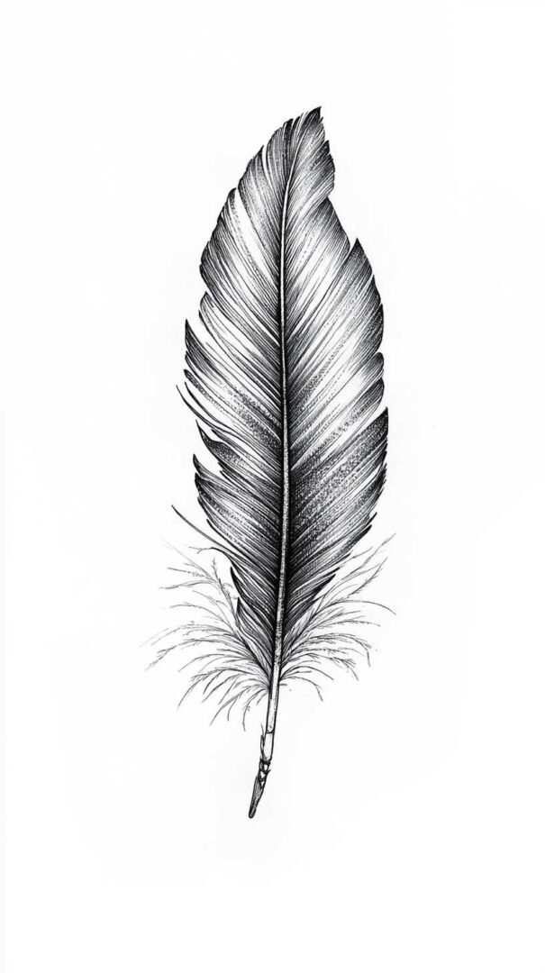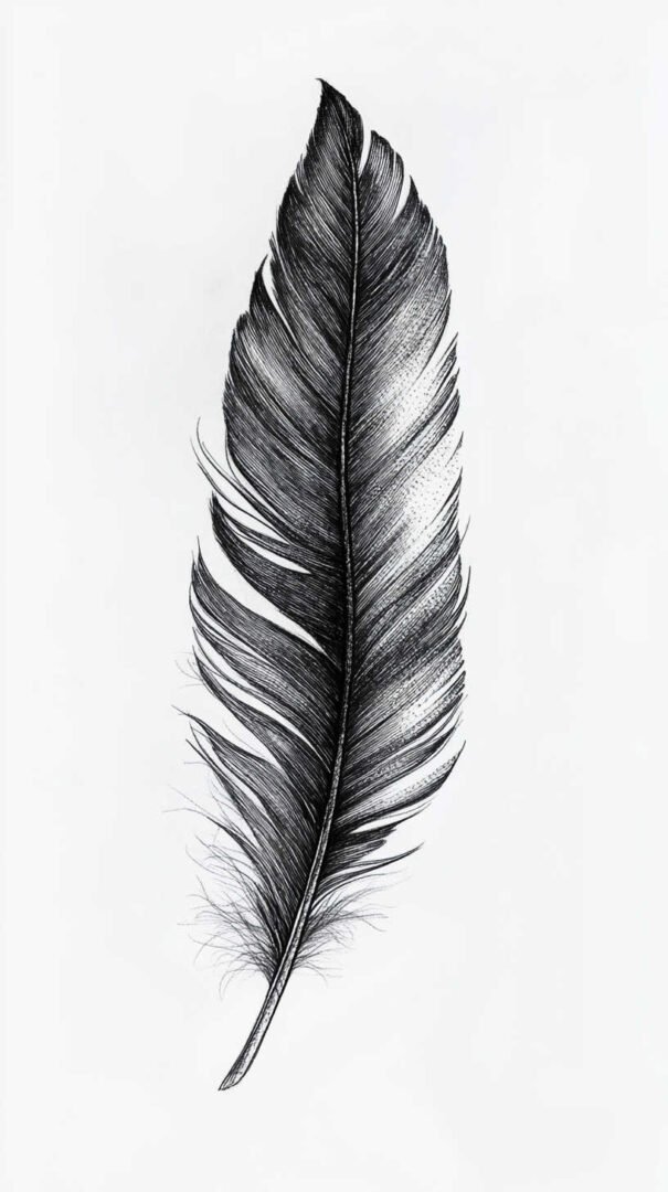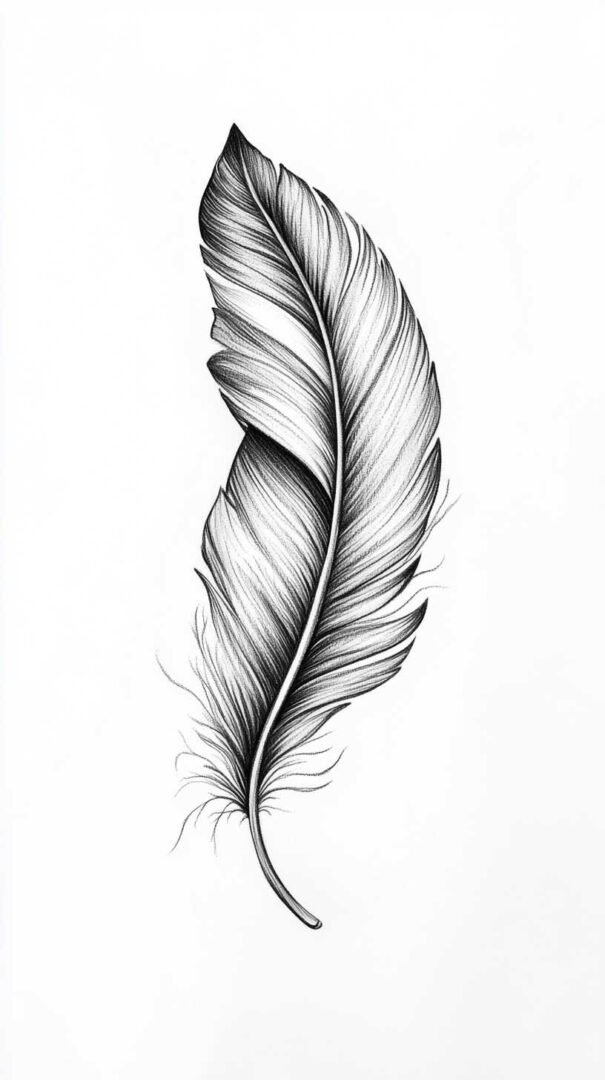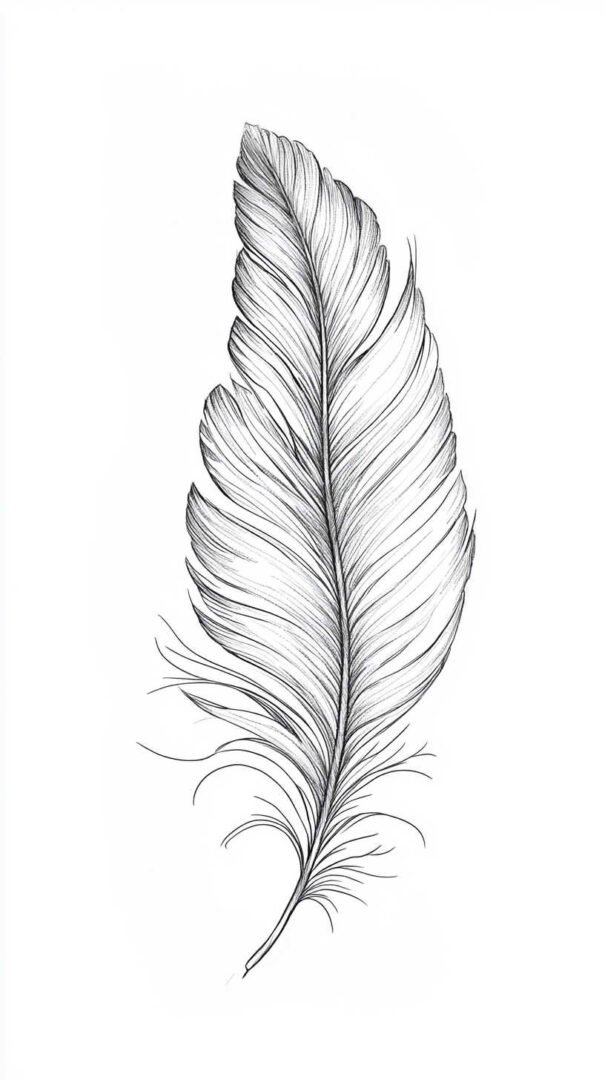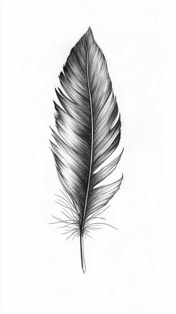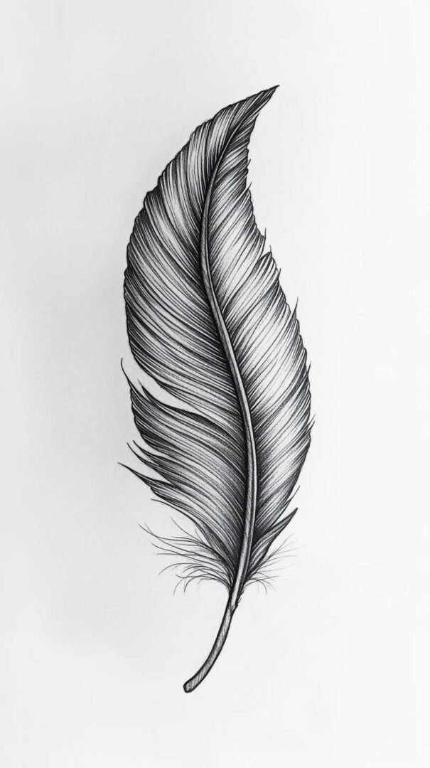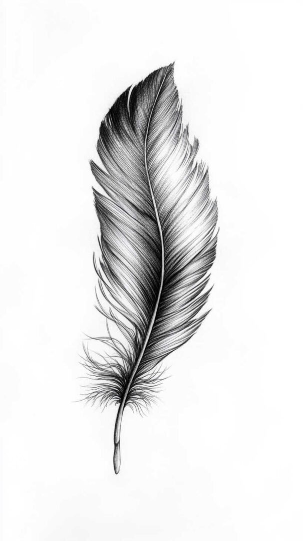 For bolder expressions, realistic feather sketches aim for photorealistic detail. These incorporate layered shading, individual barb rendering, and subtle color gradients (even in black-and-gray work) to mimic the natural iridescence of feathers. Every vane, rachis, and aftershaft receives careful attention, resulting in a three-dimensional effect that pops in high-resolution formats. Such sketches suit those seeking lifelike artistry that honors the feather’s organic beauty.
