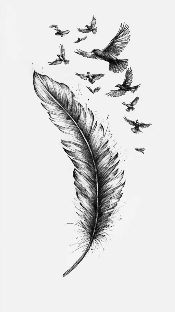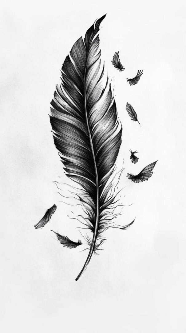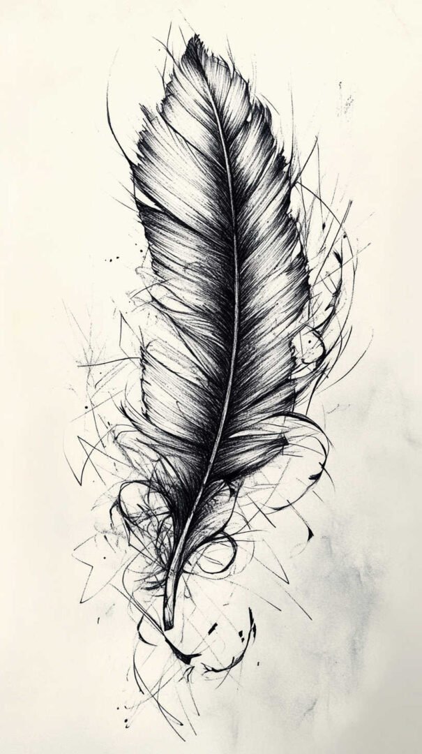 Abstract twists transform feathers into optical illusions, where negative space creates hidden shapes or the design dissolves into smoke-like wisps. These innovative sketches appeal to those wanting something unconventional yet meaningful.