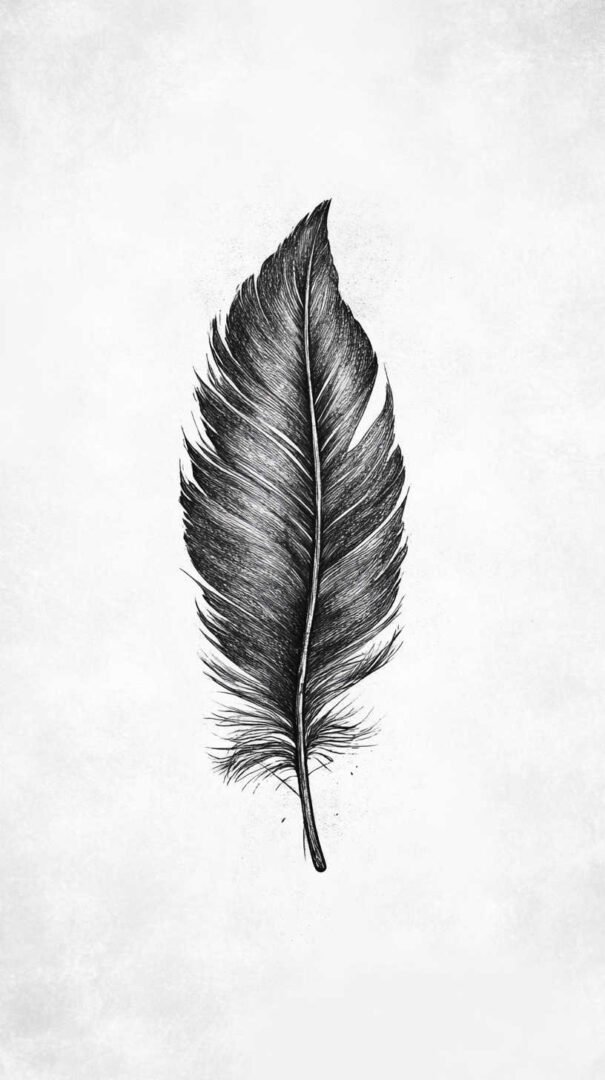 Tribal or dotwork feather designs draw from cultural motifs or stippling techniques. Tribal styles feature bold, angular lines with patterned fills, while dotwork builds texture through countless tiny dots, creating depth without solid blocks. These approaches add cultural reverence or meditative intricacy to the sketch.