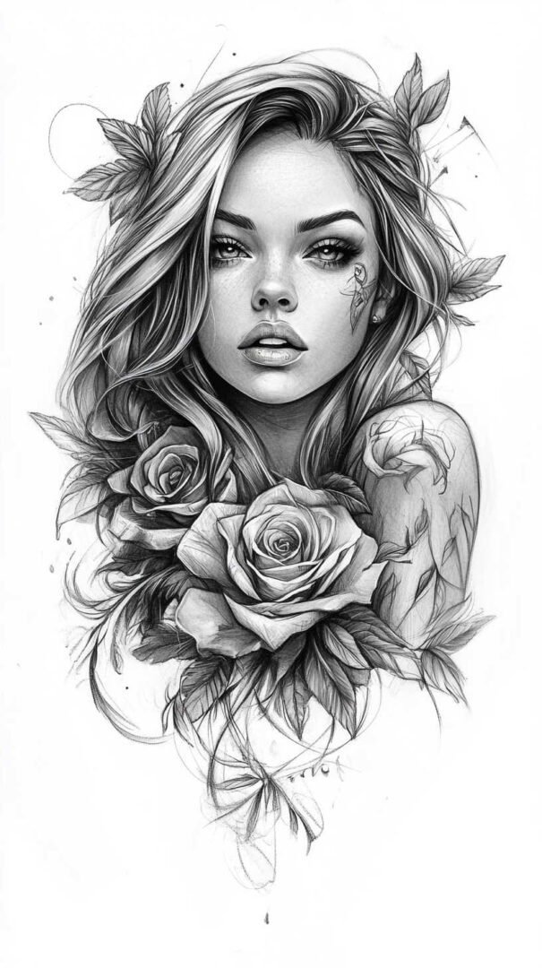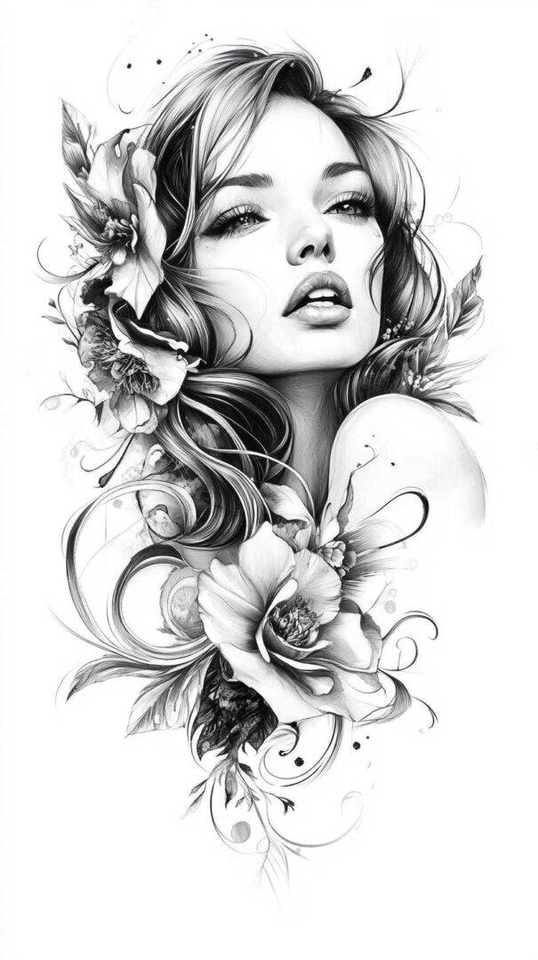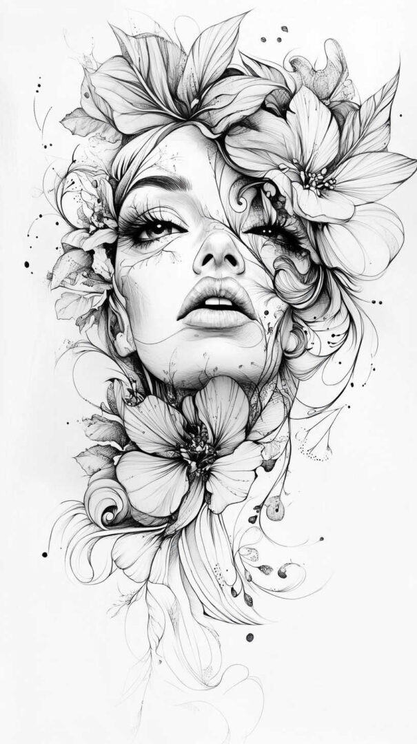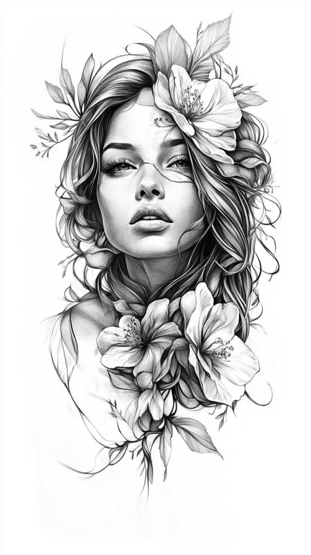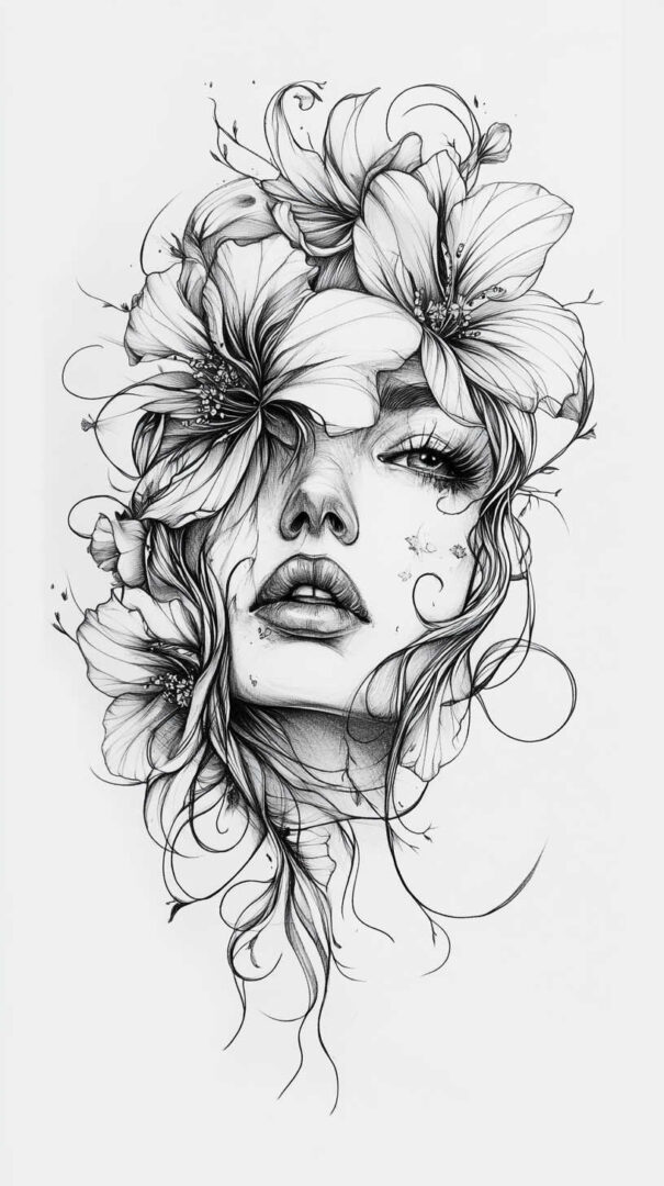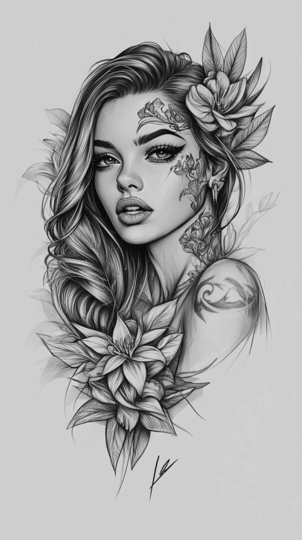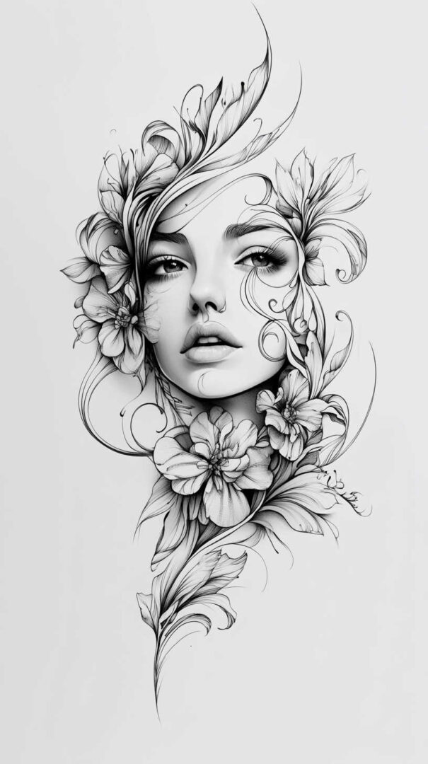 Floral designs remain a timeless favorite in female tattoo sketches, symbolizing beauty, growth, and resilience. In 4K HD, these sketches reveal the intricate veins of petals and the subtle gradients of colors, even in black-and-white renditions.