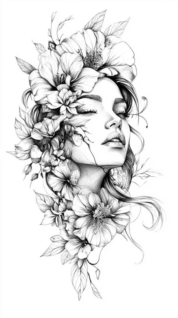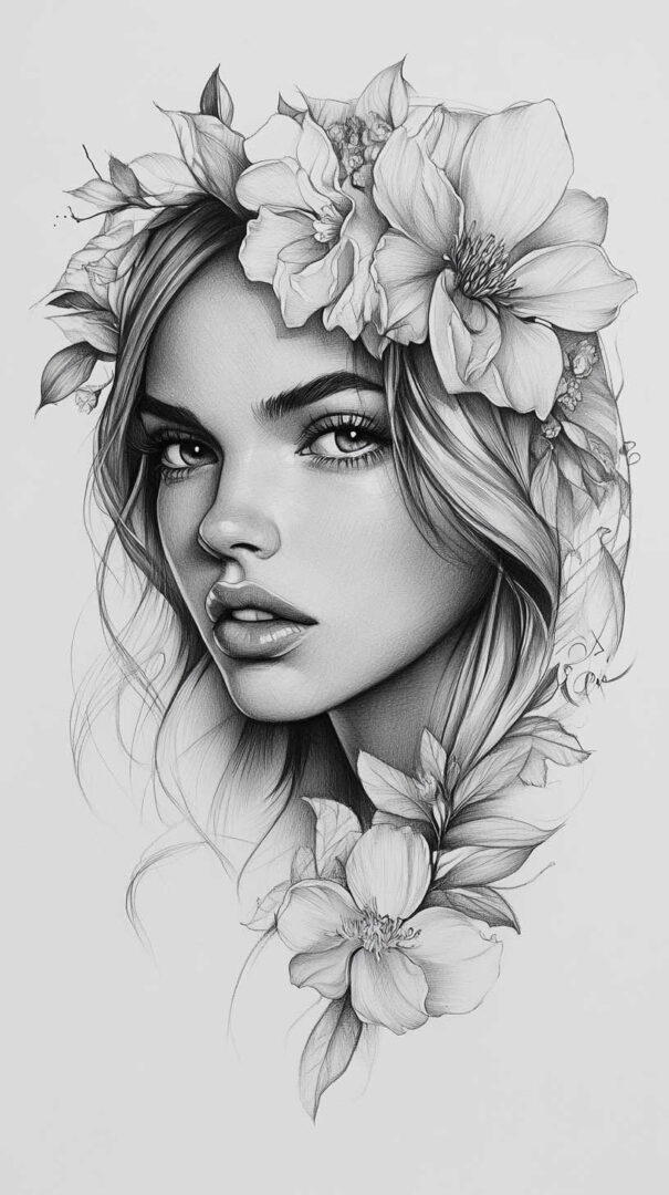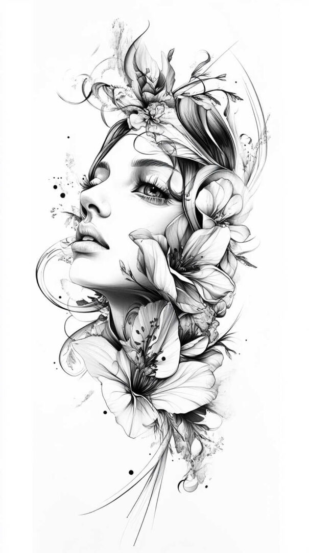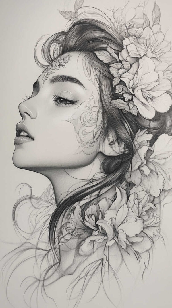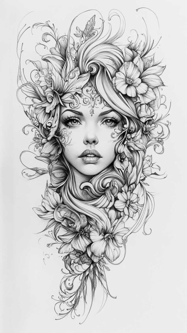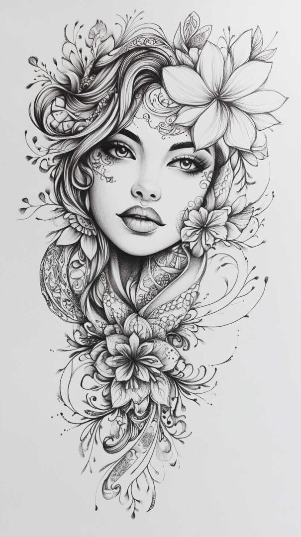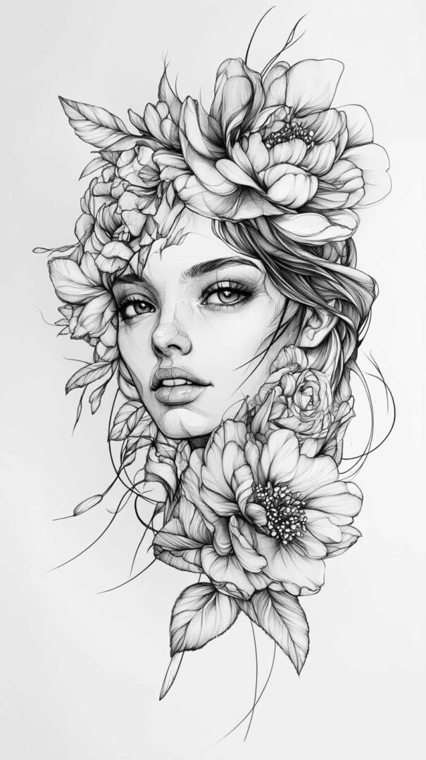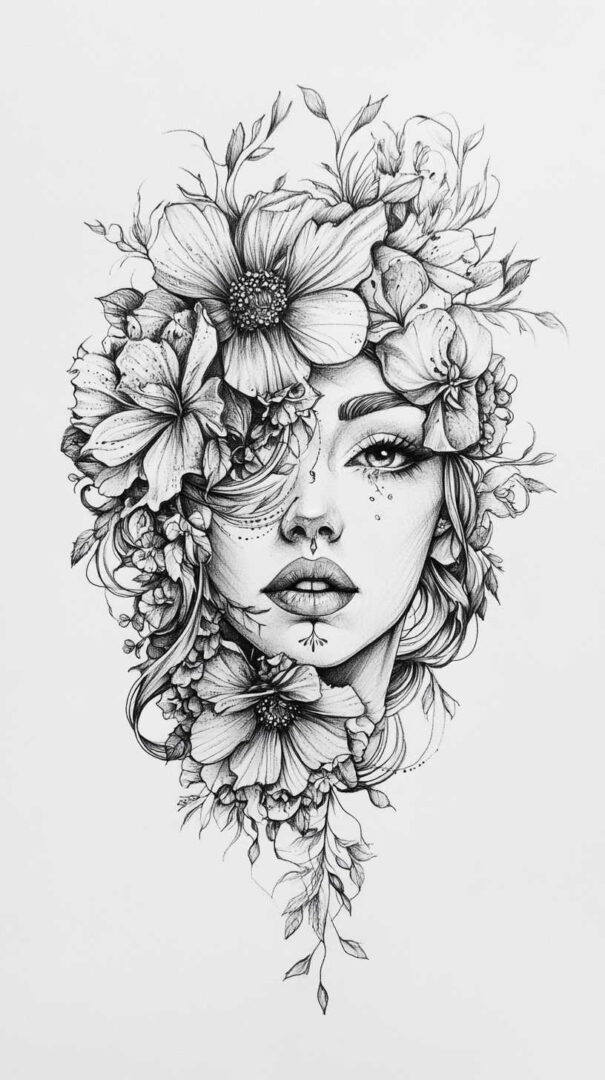Floral designs remain a timeless favorite in female tattoo sketches, symbolizing beauty, growth, and resilience. In 4K HD, these sketches reveal the intricate veins of petals and the subtle gradients of colors, even in black-and-white renditions.