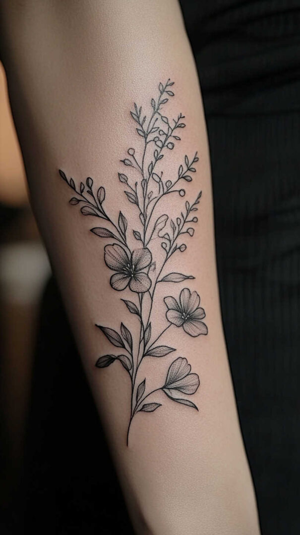 Placement is key to maximizing the impact of fine line tattoos for women, ensuring the design flows with the body’s natural lines while considering visibility and longevity. The inner forearm is a popular choice, offering a flat canvas for detailed scripts or florals that can be shown or hidden easily. It’s moderately painful and ages well with minimal sun exposure.