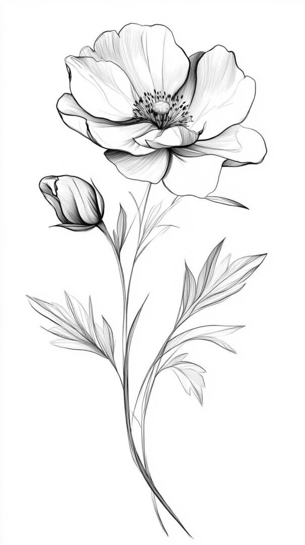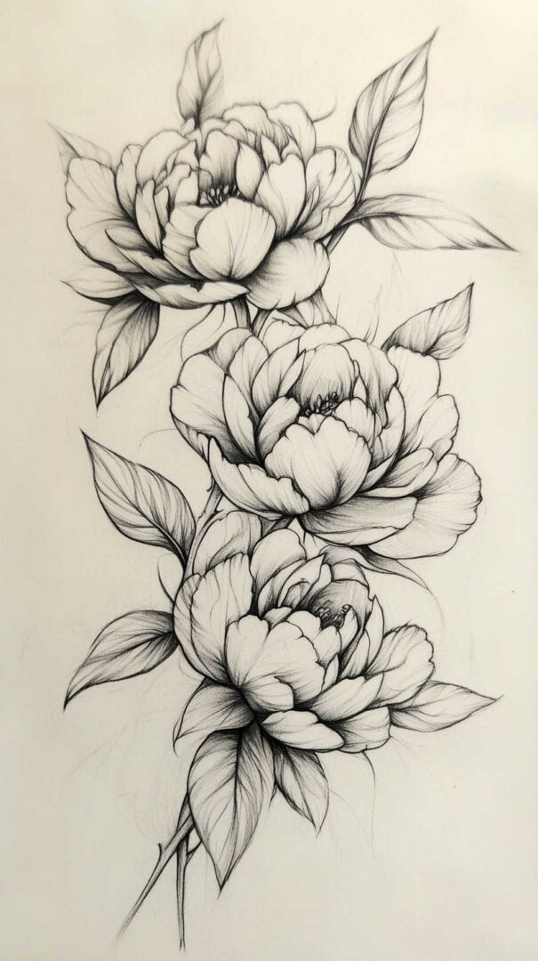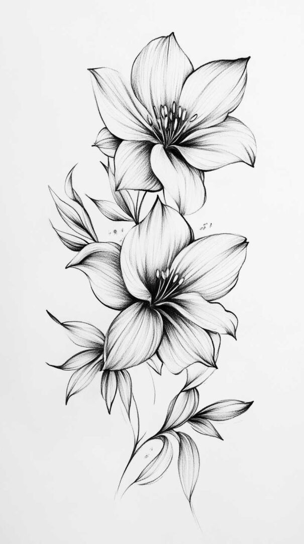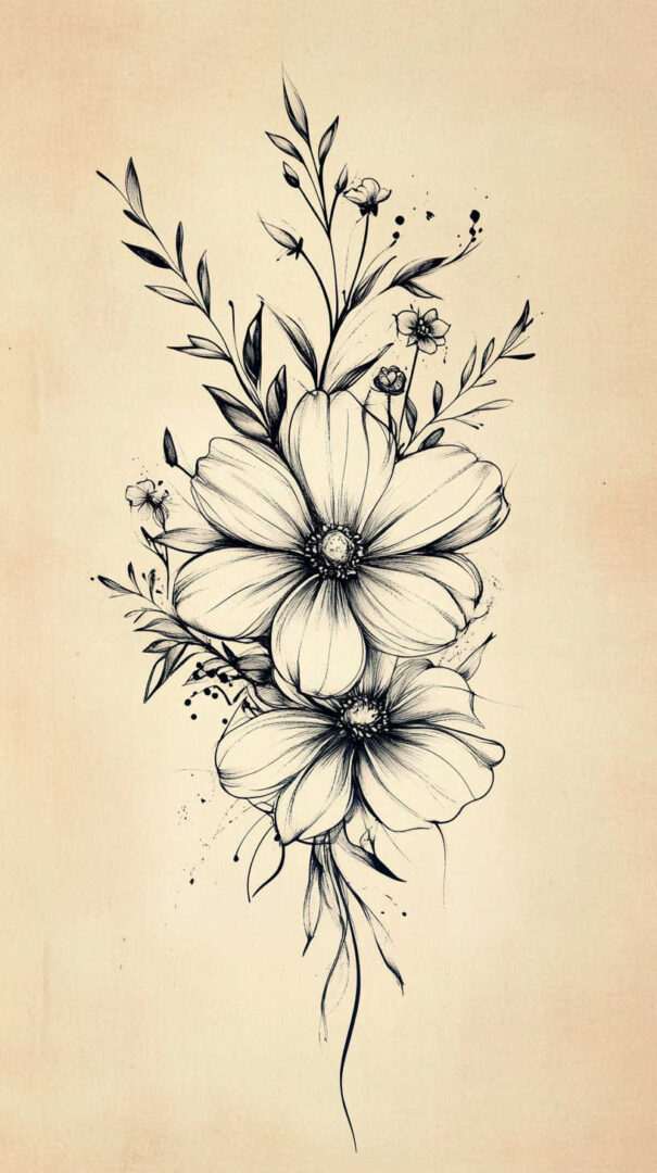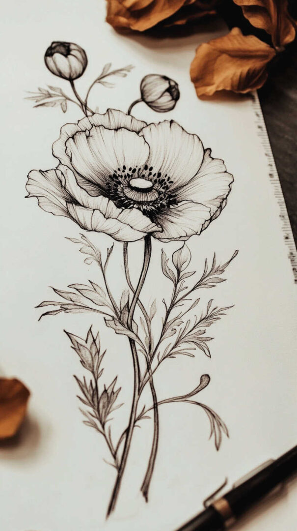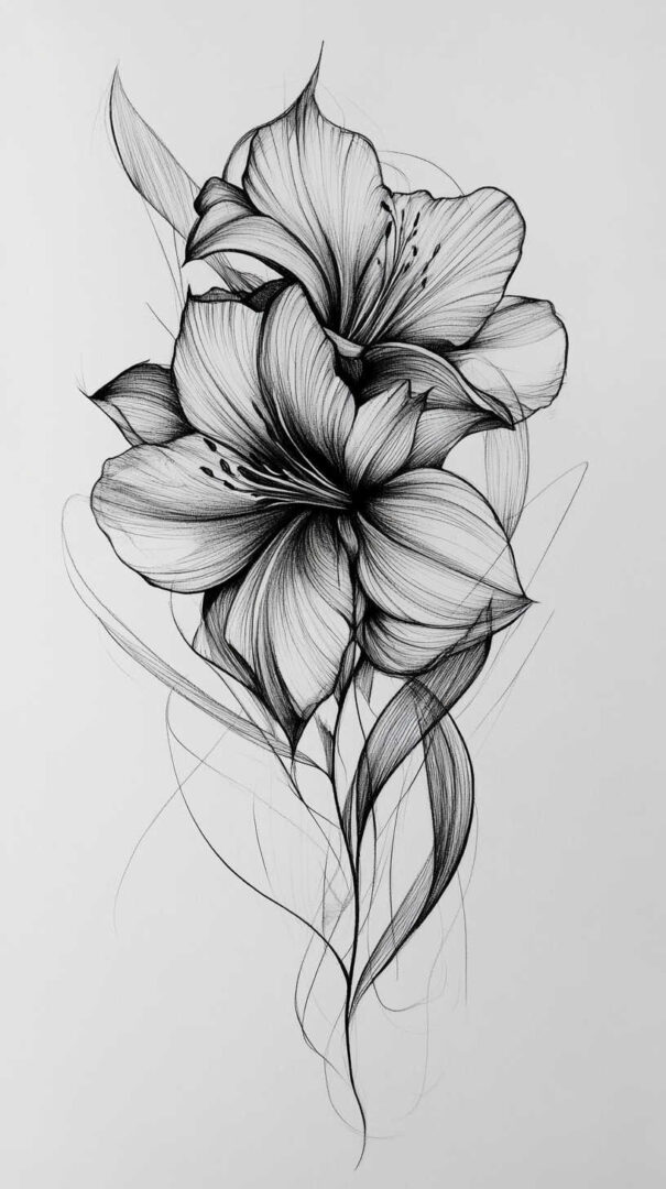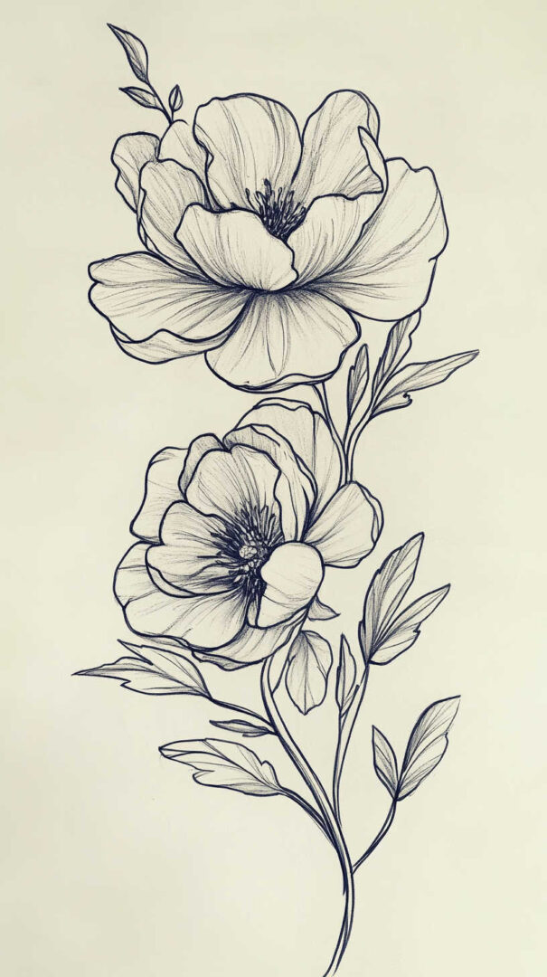 Flower tattoos appeal to both men and women, offering endless customization. They can be small and minimalist or large and elaborate, realistic or stylized. High-resolution sketches emphasize natural movement, negative space, and how light interacts with petal edges for lifelike results.
