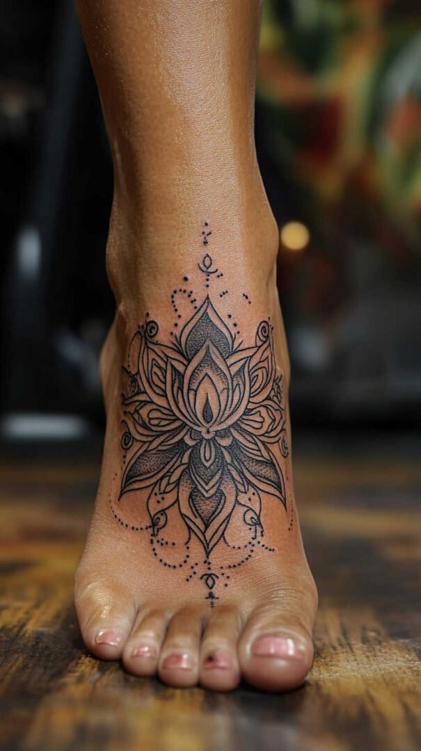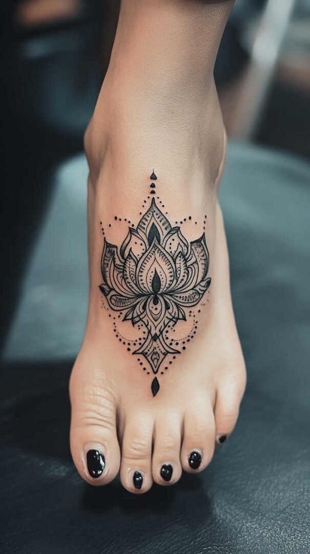 Symbolic animals bring personality. Butterflies, birds in flight, or delicate dragonflies represent change, freedom, and lightness. Mandalas, with their intricate symmetry, promote balance and harmony, often adapted into smaller, circular designs centered on the top of the foot. Geometric patterns—triangles, dots, or sacred geometry—appeal to modern minimalists seeking clean, abstract beauty.
