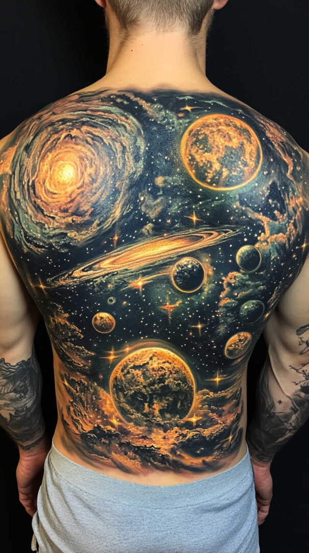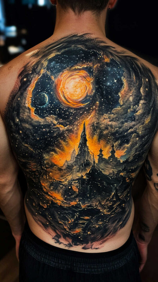 The back offers the largest uninterrupted skin area, perfect for panoramic compositions, symmetrical designs, or progressive storytelling. Pain levels vary (shoulder blades and spine are more sensitive), but the result is a private yet monumental piece of art. Symbolically, the back represents support, burden, and protection — ideal for designs about resilience, spiritual armor, or carrying one’s legacy.