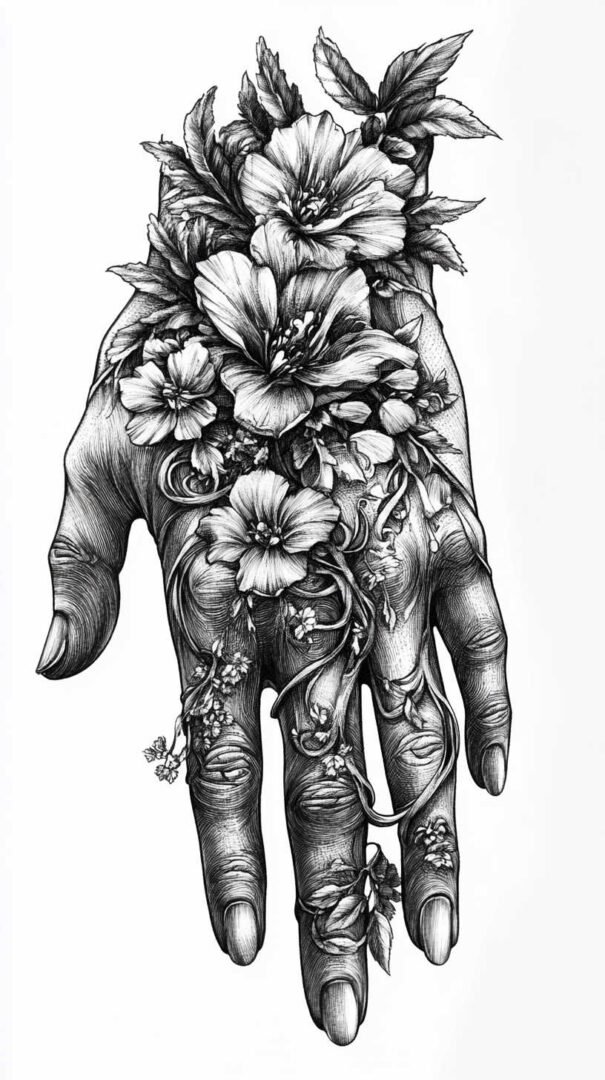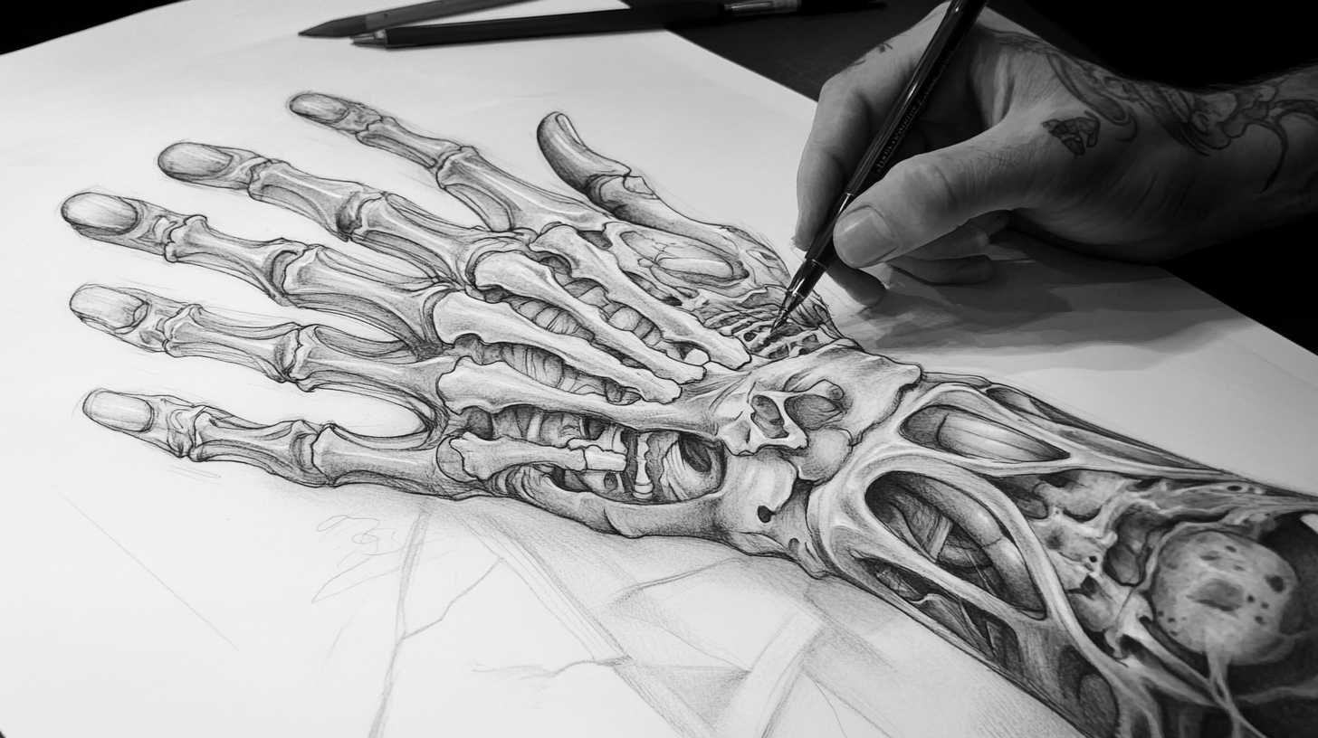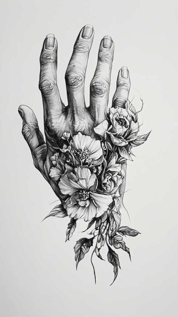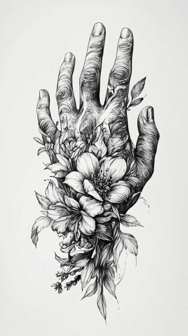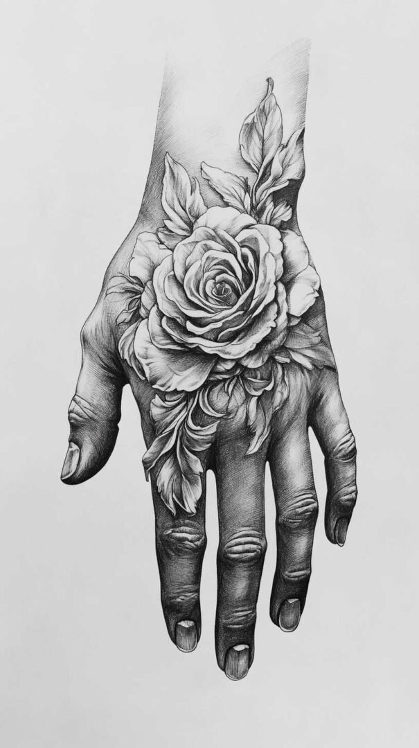 The skin on hands is thin with frequent motion, leading to faster fading compared to other body areas. High-quality 4K HD sketches help artists plan for longevity by emphasizing bold contrasts, strategic shading, and designs that account for natural creases and wear. These detailed sketches serve as blueprints, ensuring every element aligns perfectly with the hand’s anatomy for a seamless, professional finish.