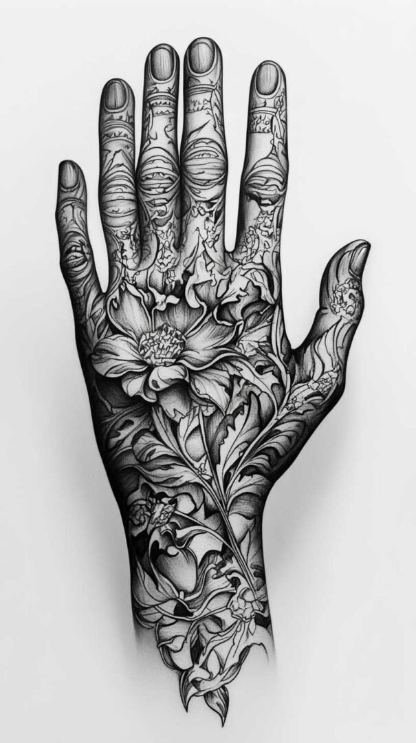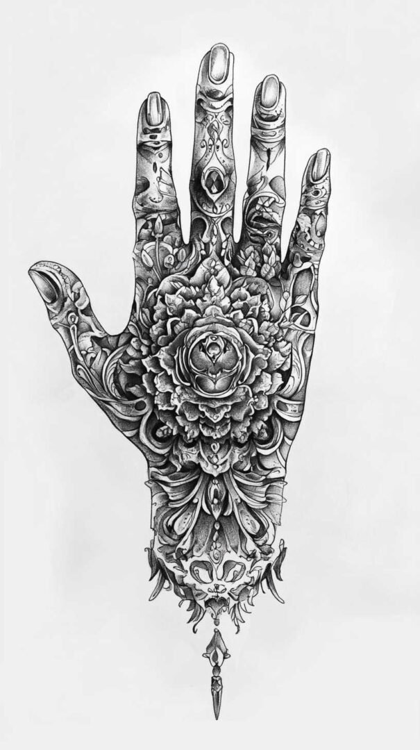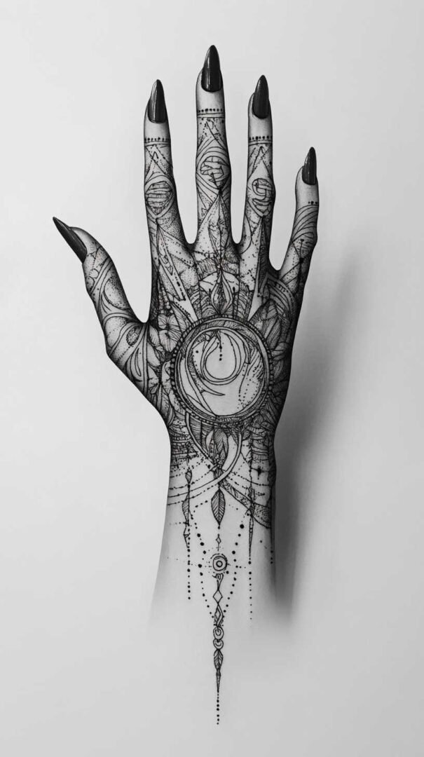 A full hand tattoo sketch in 4K HD quality implies ultra-detailed, high-resolution conceptual artwork that captures intricate linework, shading, and depth for stunning clarity. These designs transform the hand into a living canvas, blending artistry, symbolism, and personal expression.