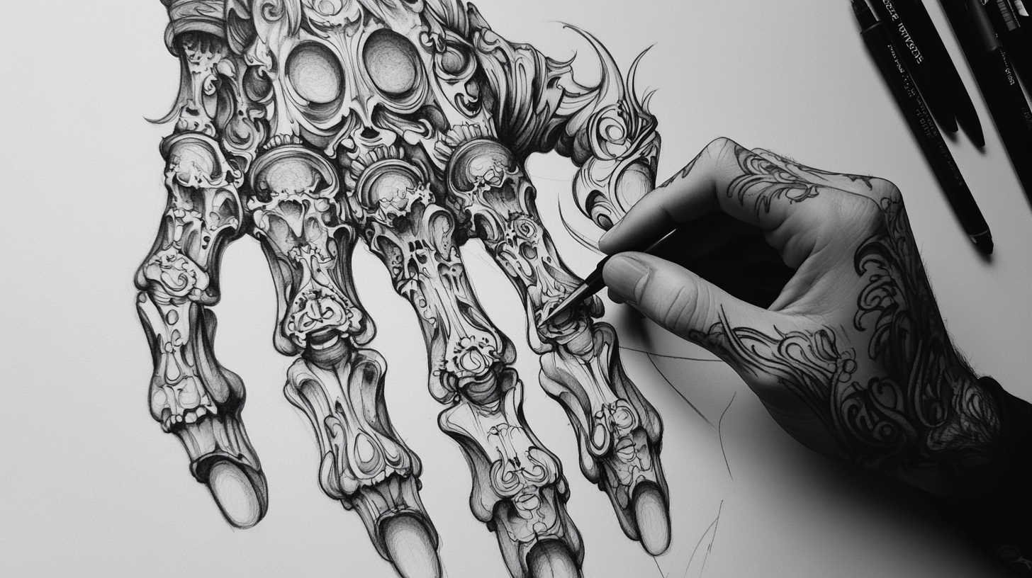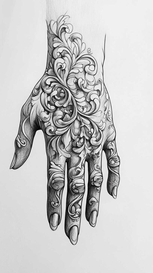 Intricate Design Elements in Full Hand Sketches