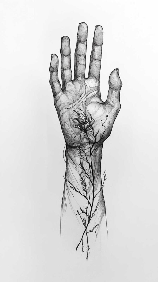 Palm coverage adds complexity, as this area experiences the most friction. Designs here frequently use negative space or lighter shading to maintain readability over time. A cohesive sketch ties everything together: a central theme on the back flows into finger extensions and palm accents, creating a unified piece rather than disjointed elements.