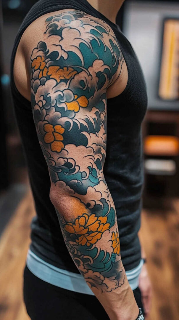 Colorful sleeves pop with vibrancy—Japanese or neo-traditional use bold hues for energy. Selective color accents highlight focal points in otherwise monochromatic designs.
