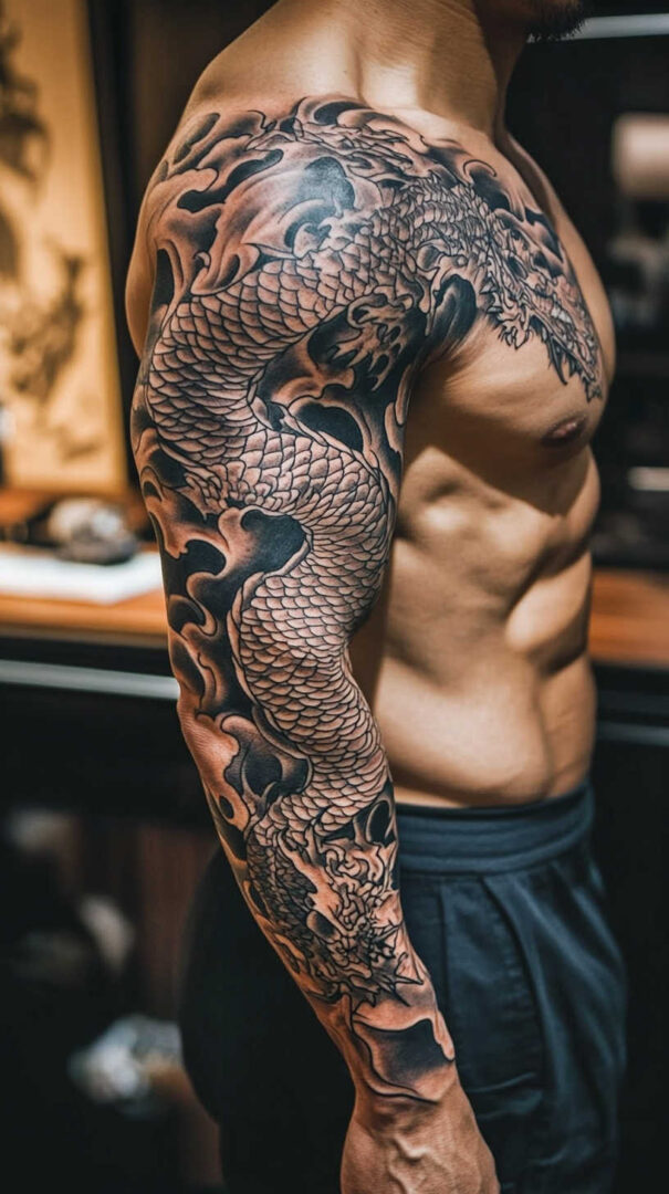 - Tiger and Dragon Fusions: Tigers convey raw ferocity; dragons add wisdom. Coiling forms wrap the arm for epic battles or harmonious balance.