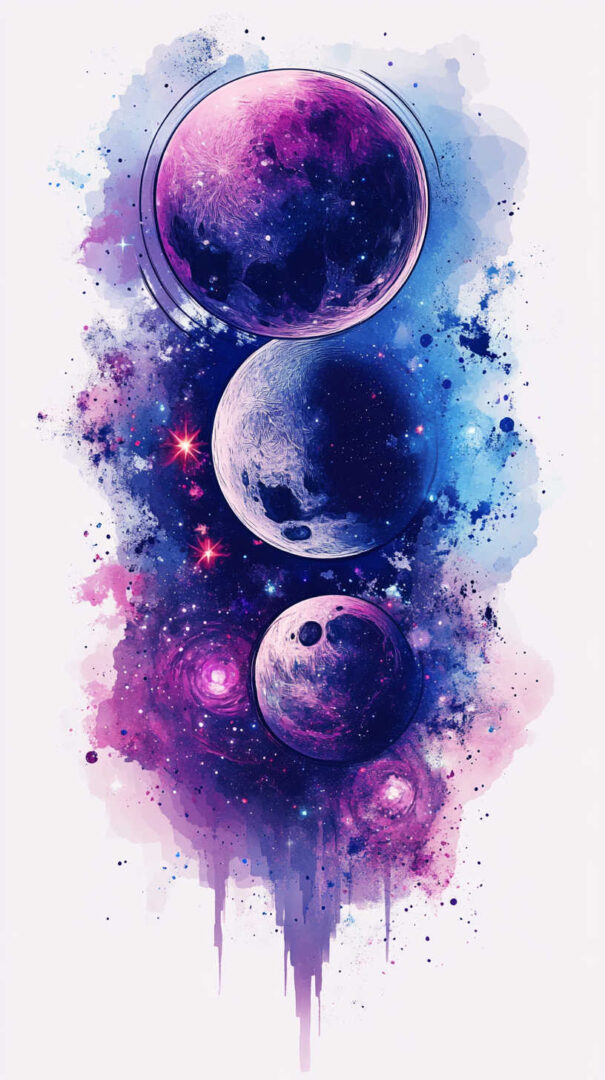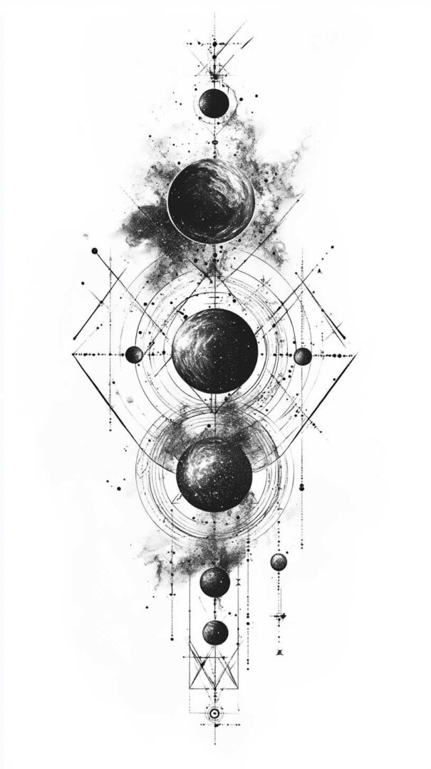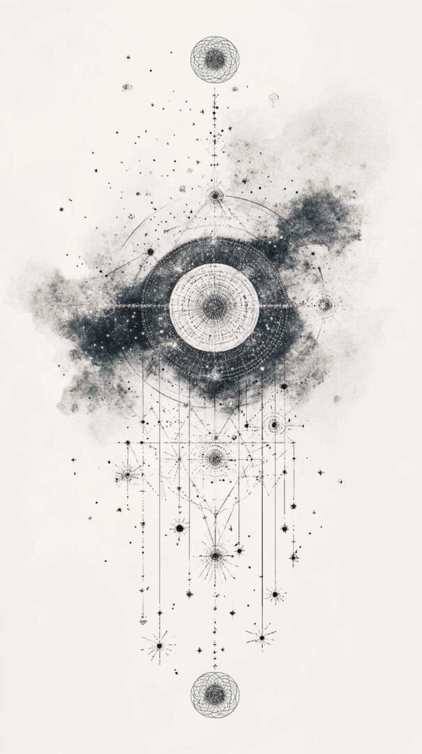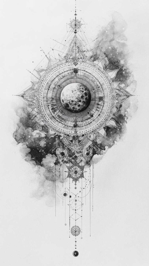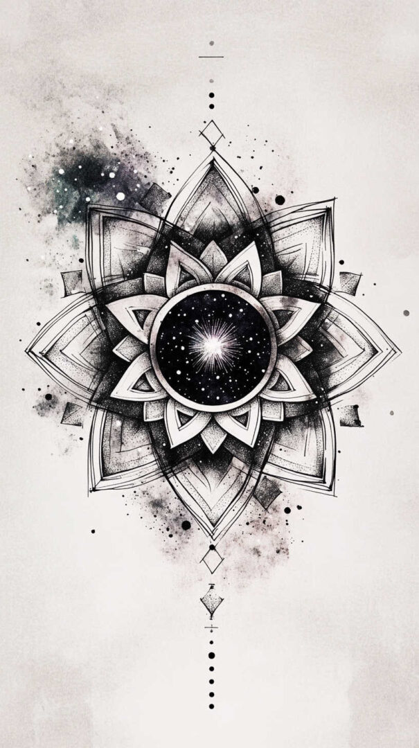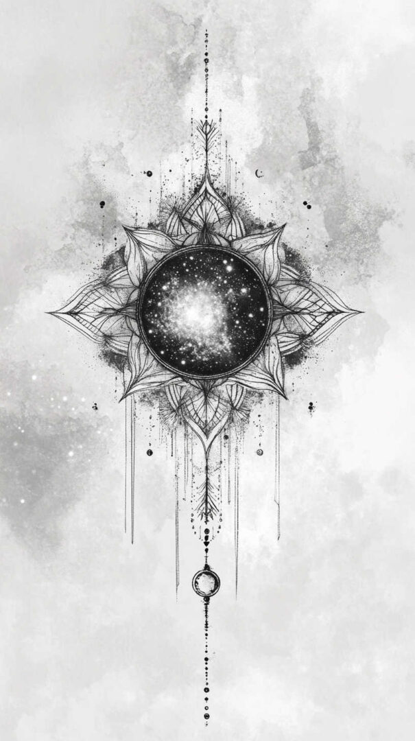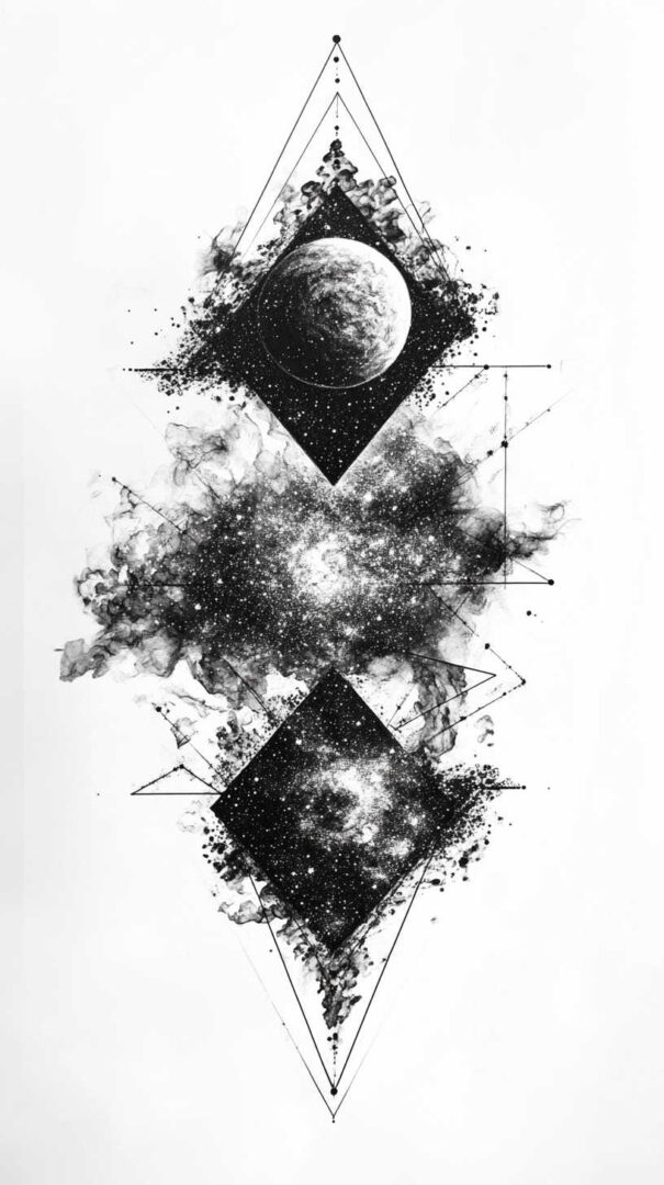- Style Fusion — Realistic galaxy with geometric sacred patterns or traditional line art.