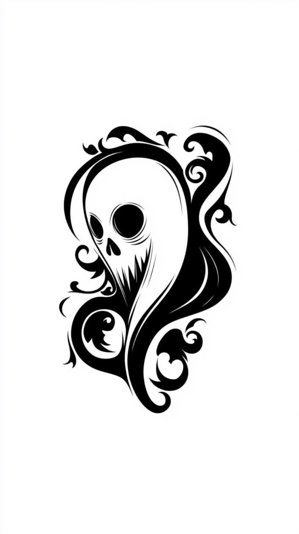 Single continuous lines form classic sheet ghosts or floating silhouettes. Tiny ghost heads with wavy tails and dot eyes offer subtlety. Fine-line techniques add delicate mist trails or faint facial hints without clutter.