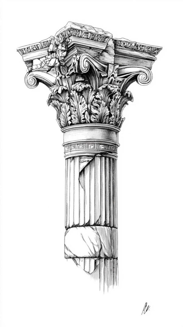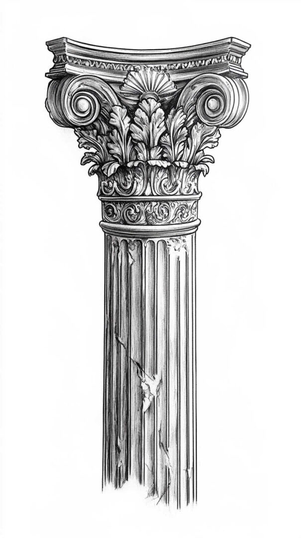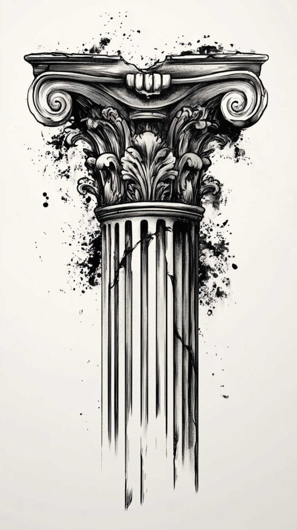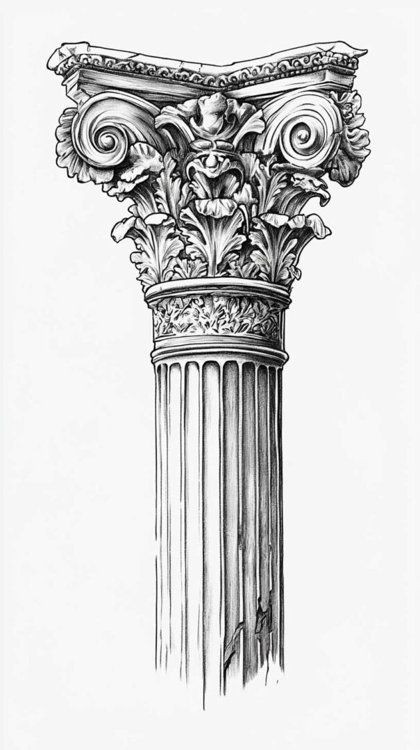 - Columns & Architecture — Doric, Ionic, or Corinthian pillars symbolizing strength and stability.