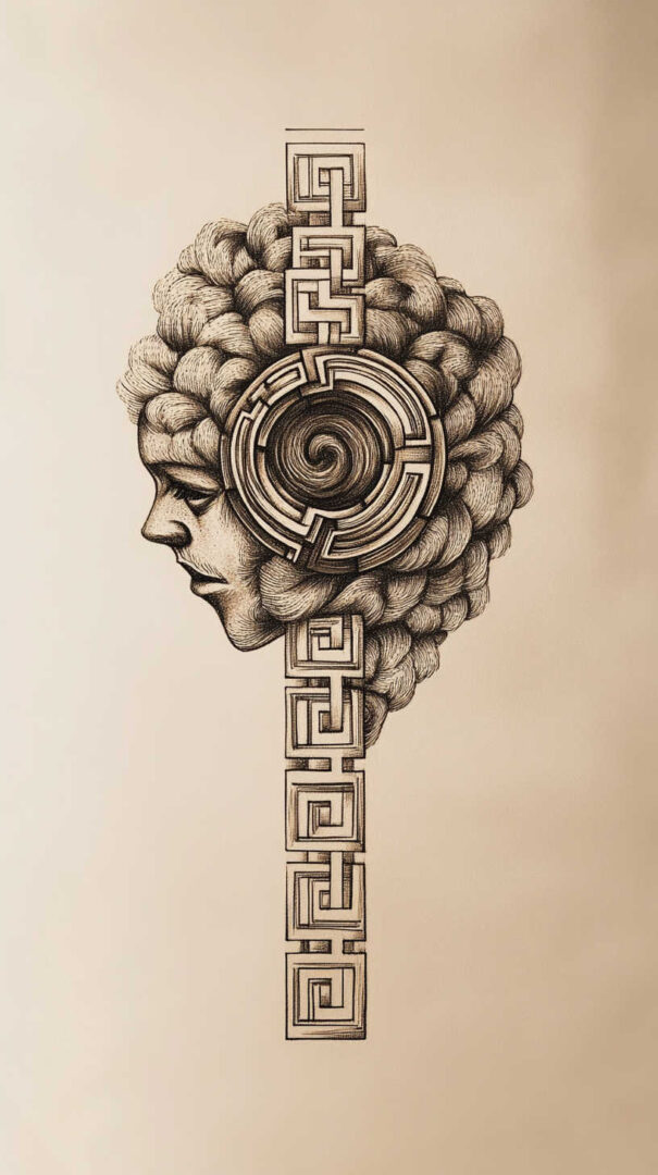 Greek tattoos appeal to men and women seeking timeless strength, wisdom, courage, and intellectual depth. Sketches range from minimalist single symbols to elaborate mythological scenes. High-resolution renders emphasize classical proportions, balanced composition, and how light and shadow create a sculptural, almost marble-like effect on skin.