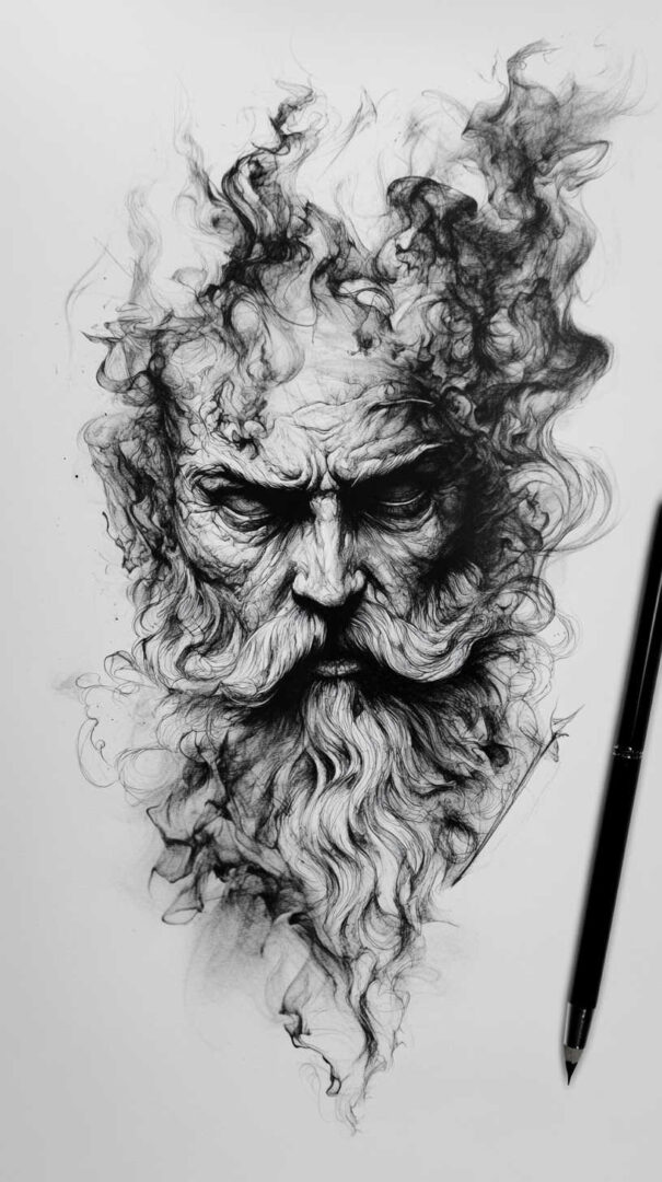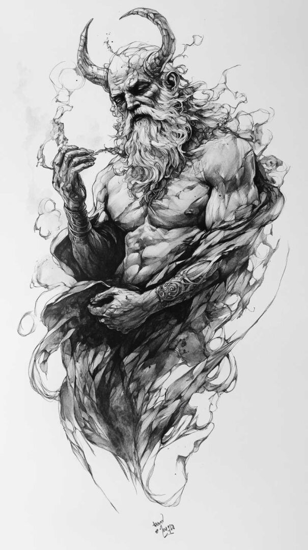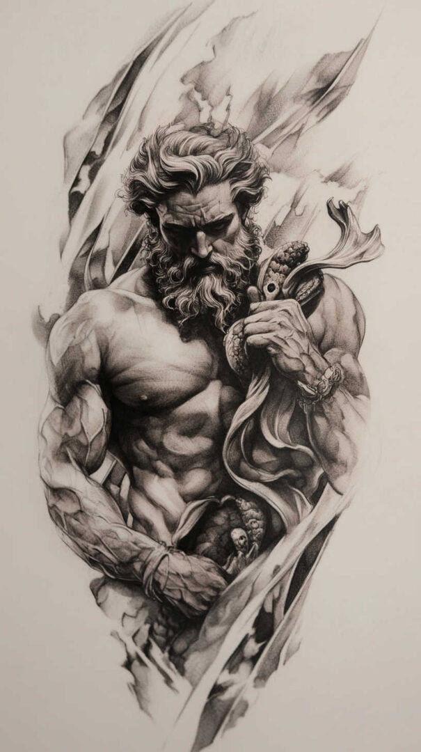 Hades tattoo sketches draw from the powerful Greek god of the underworld, ruler of the dead, and master of hidden wealth. Often depicted as a stern, regal figure with a dark beard, flowing robes, and symbols of his domain, Hades represents death, rebirth, wealth from the earth, justice, and the balance between light and shadow. In 4K HD quality, sketches reveal exceptional detail — realistic muscular anatomy, intricate fabric folds, metallic crown and scepter textures, three-headed Cerberus, shadowy mist effects, and dramatic lighting contrasts — providing lifelike blueprints that convey both fear and quiet majesty.