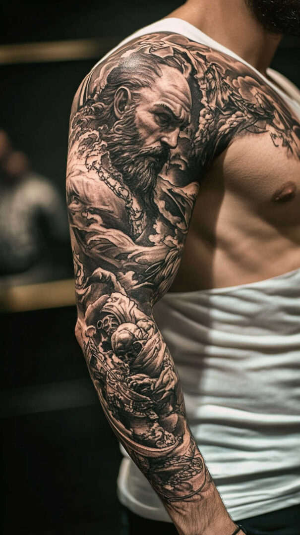 Achieving 4K HD in half sleeve tattoos requires specific styles and techniques. Realism stands out, where artists replicate photographs on skin. Portraits of loved ones or icons demand pinpoint accuracy in features, skin tones, and expressions. For men, this might mean a detailed face integrated into a larger scene, like a warrior amid battle.