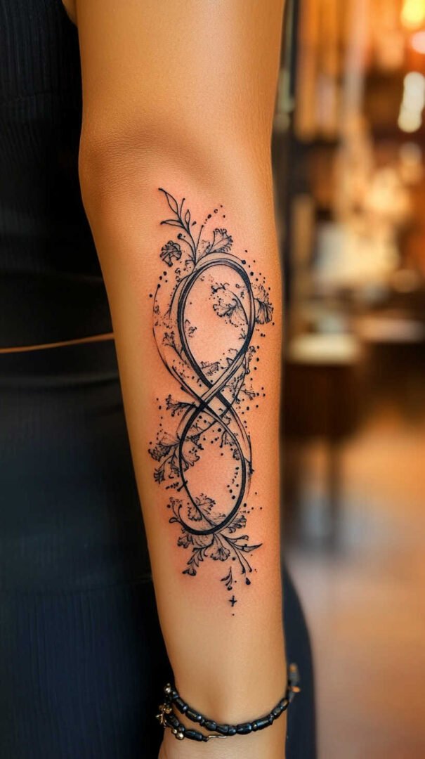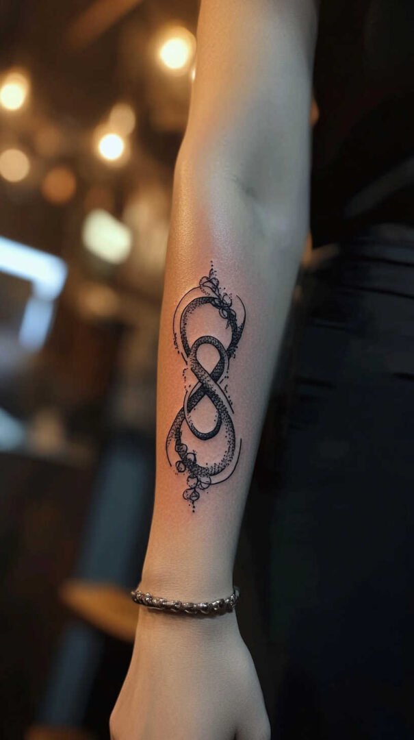 These meanings make infinity tattoos profoundly personal. A small wrist design might whisper quiet strength, while a larger back piece shouts bold declarations. In feminine interpretations, soft curves, flowing scripts, and natural elements amplify grace and elegance.