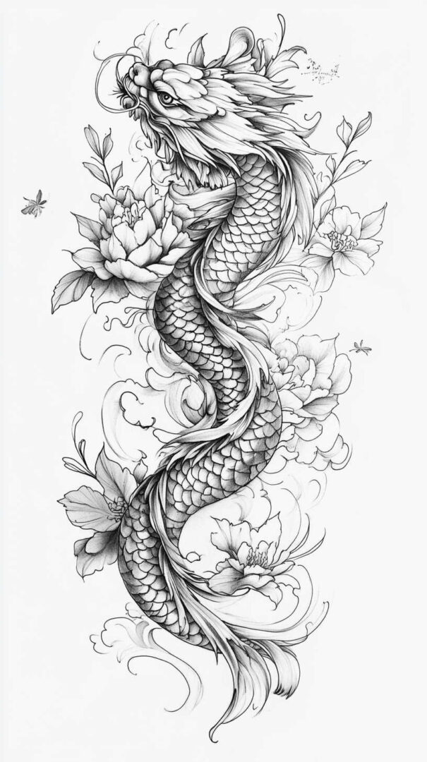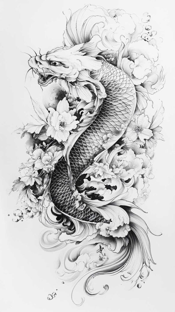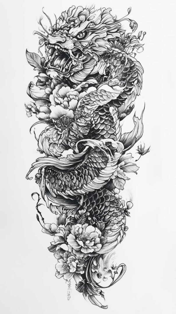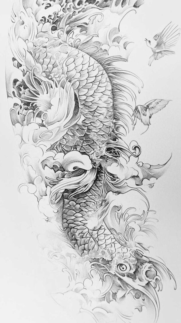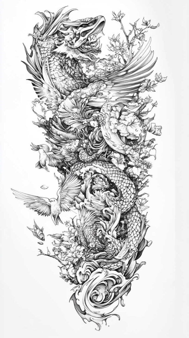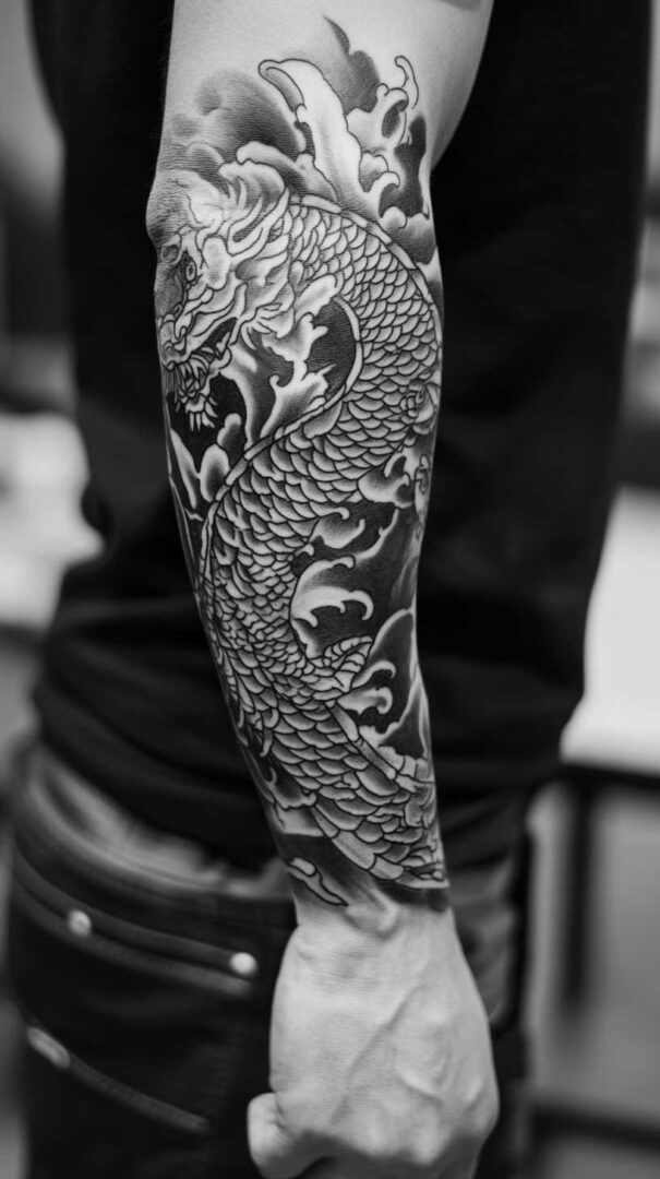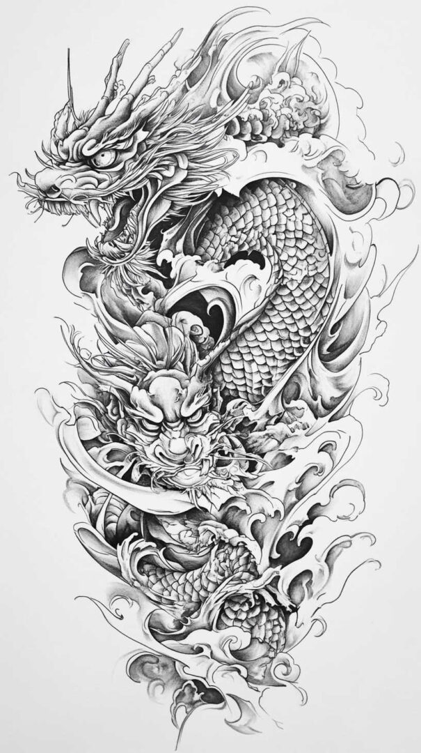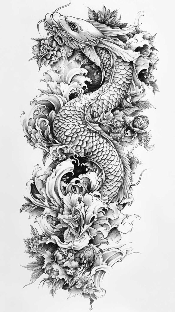 - Personal Narrative — Incorporate meaningful elements like family crests, dates, or personal symbols hidden in scales or waves.