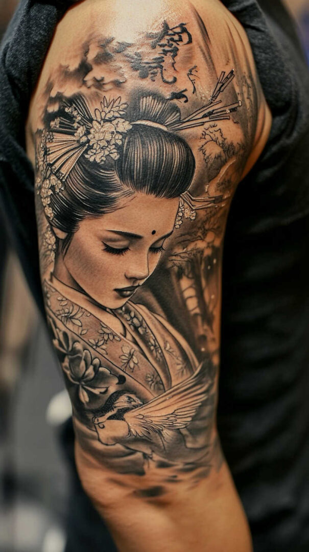 Men choose irezumi for its powerful aesthetic and deep meanings: strength through adversity, protection, wisdom, and transformation. Large-scale pieces dominate—full sleeves, back suits, chest panels—turning skin into epic storytelling canvases. High-resolution renders highlight traditional techniques like tebori-inspired line weight and color depth, ensuring designs feel authentic yet modern.