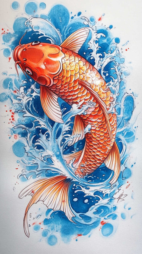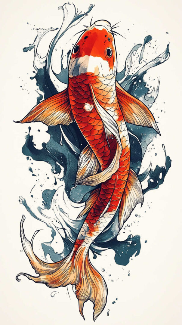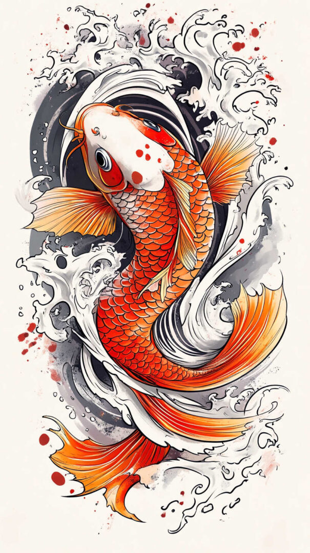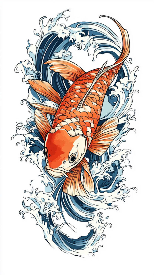 - Koi & Waves — Turbulent seas representing life’s challenges.