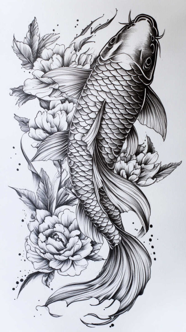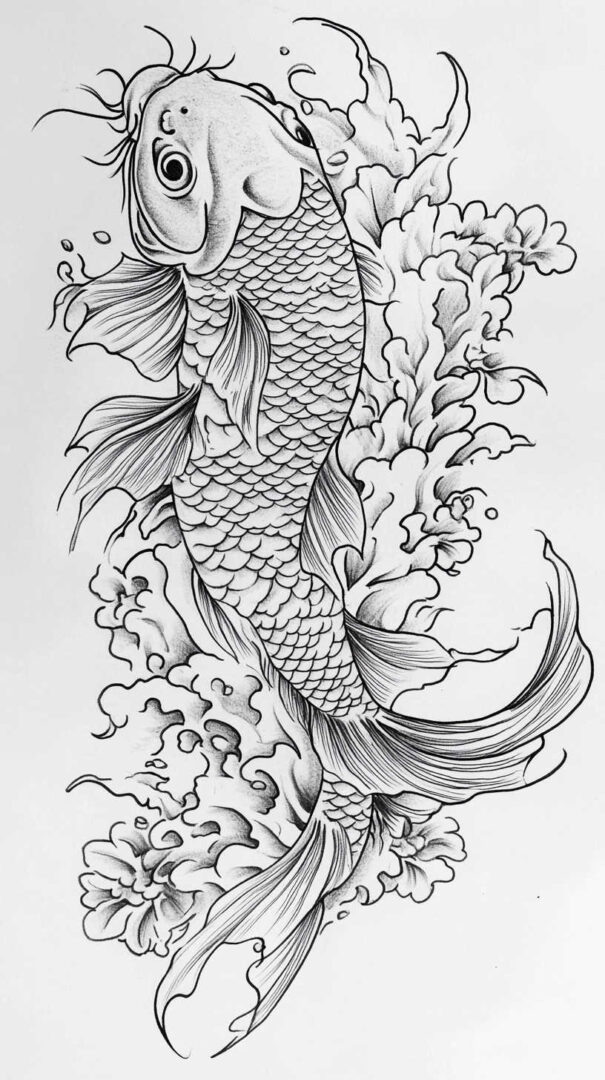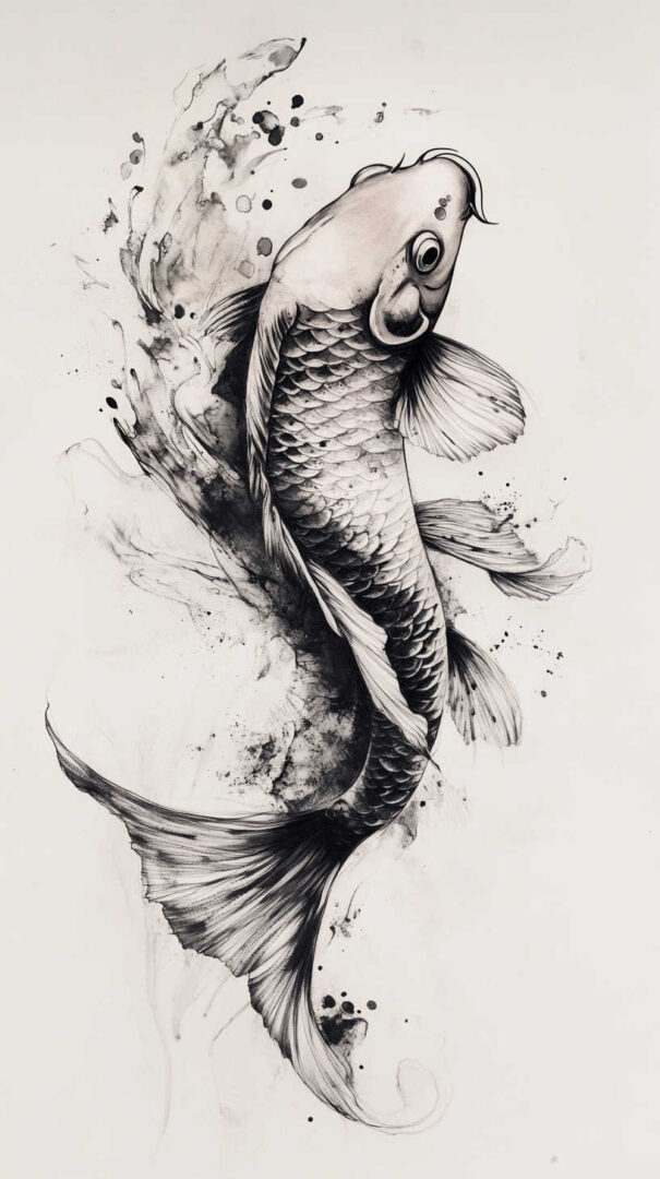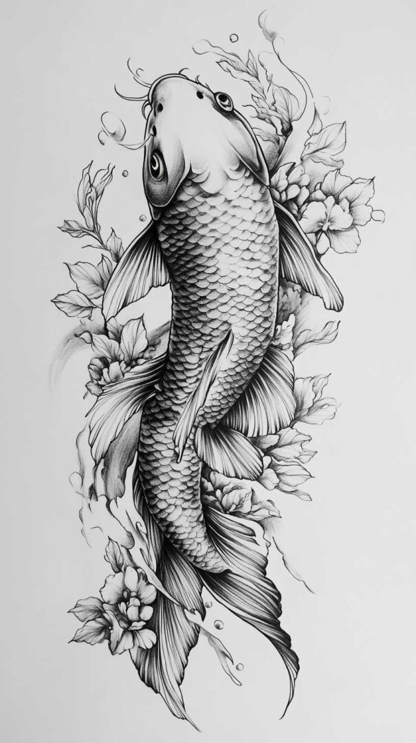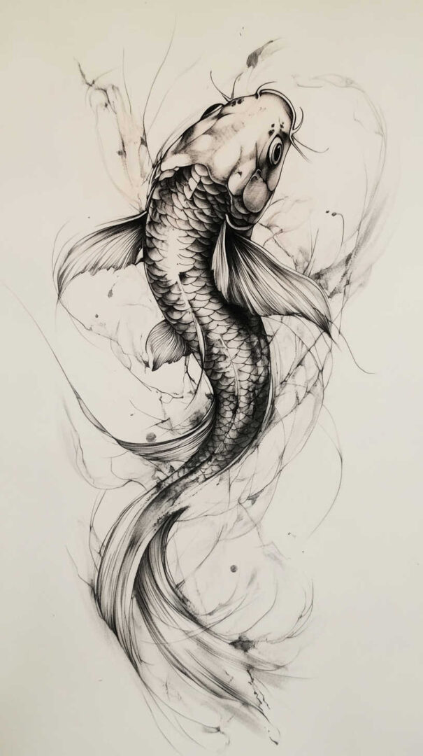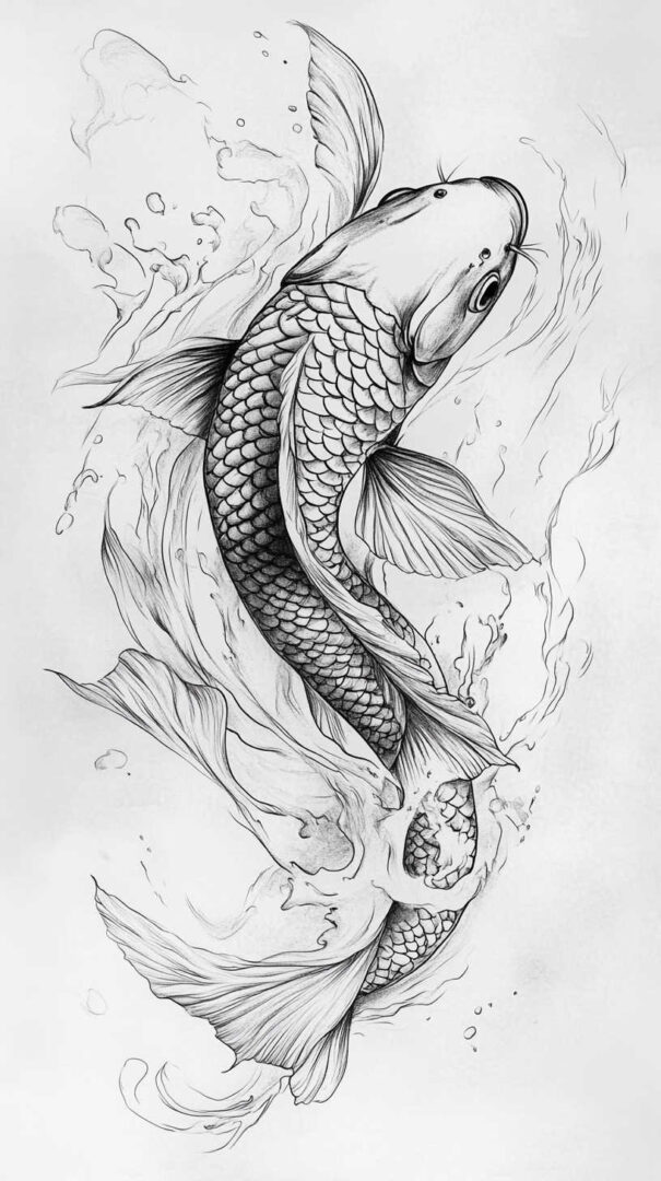 Koi Fish Tattoo Sketch 4K HD Designs