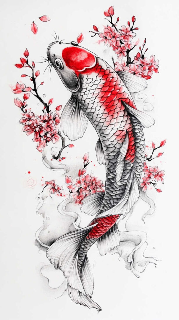 - Koi with Lotus or Cherry Blossoms — Purity and transient beauty alongside perseverance.