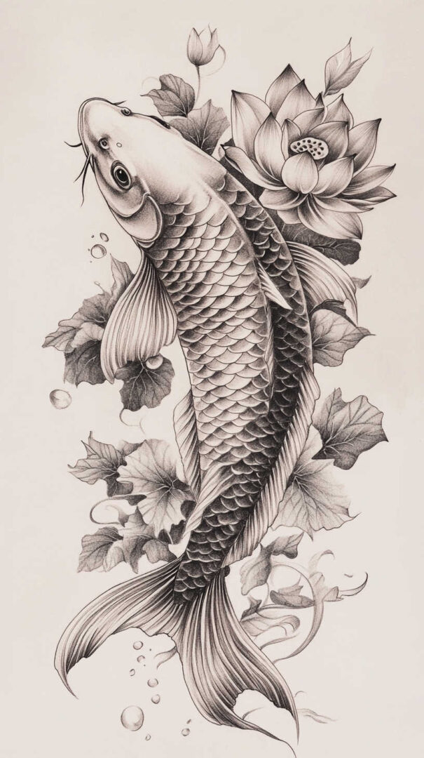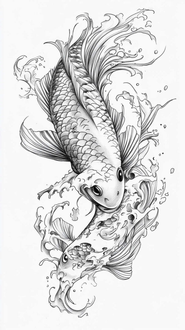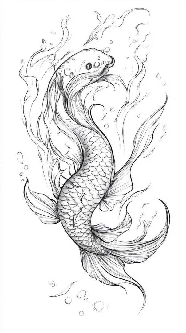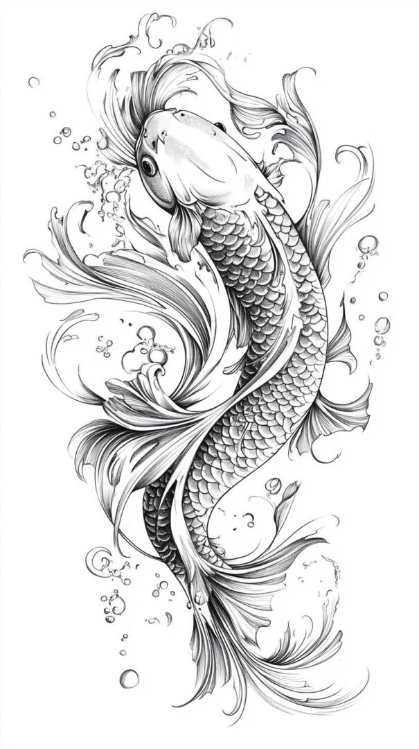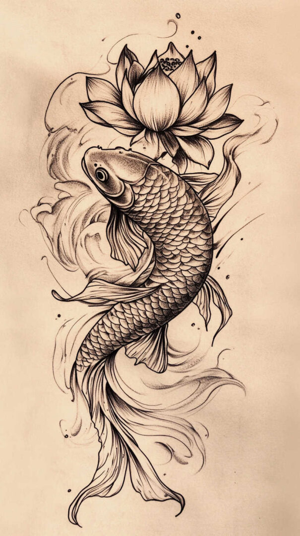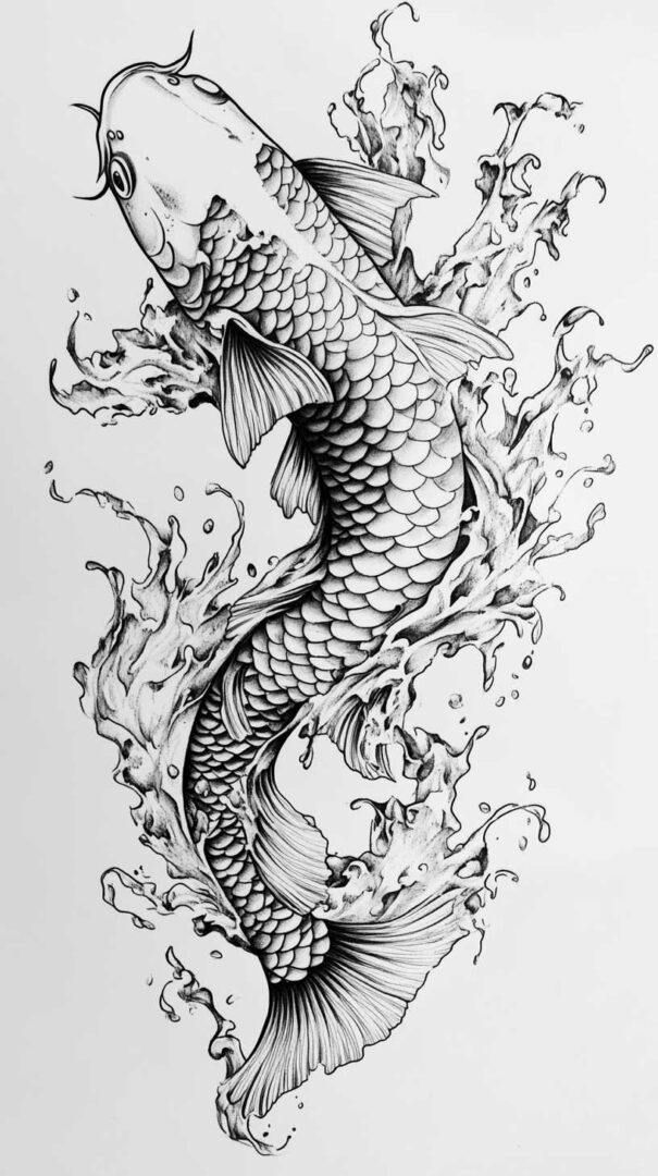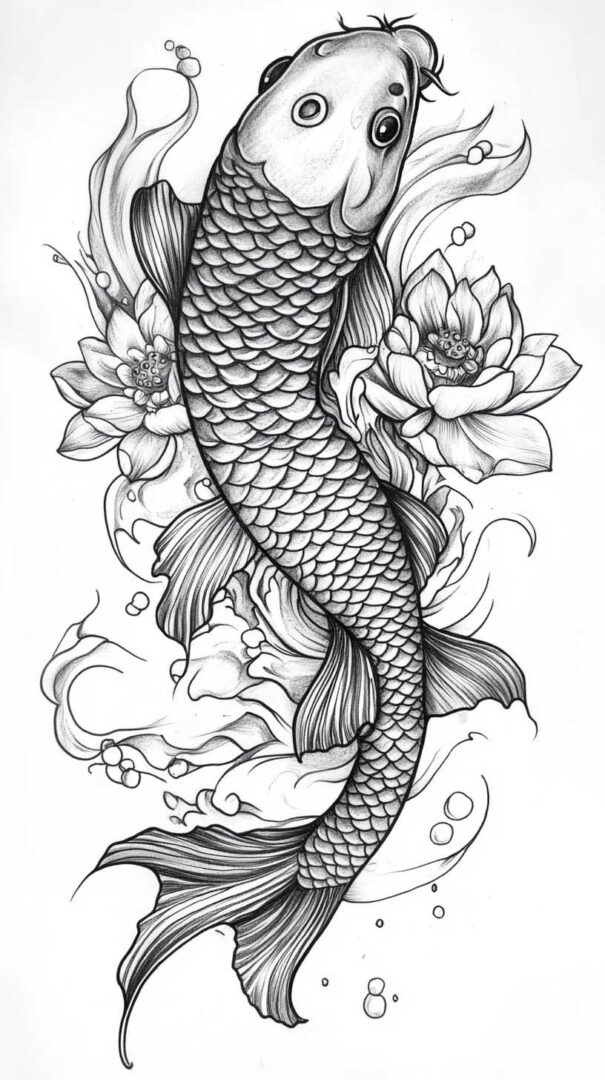Koi fish tattoo sketch designs in 4K HD beautifully capture perseverance, strength, transformation, and good fortune through graceful lines, detailed scales, and dynamic movement. From traditional Japanese masterpieces and realistic swimmers to minimalist silhouettes and symbolic compositions, each sketch embodies the legendary journey of overcoming obstacles to achieve greatness. Visualize meticulously in stunning detail, choose a koi that reflects your own upstream battle, and ink a design as resilient and inspiring as the fish itself.