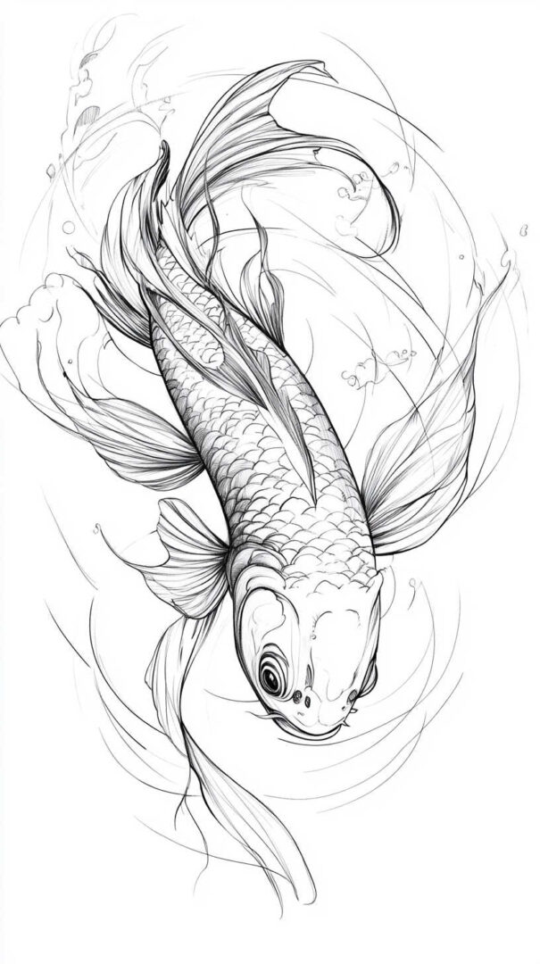 Realistic koi sketches bring the fish to vivid, lifelike presence.