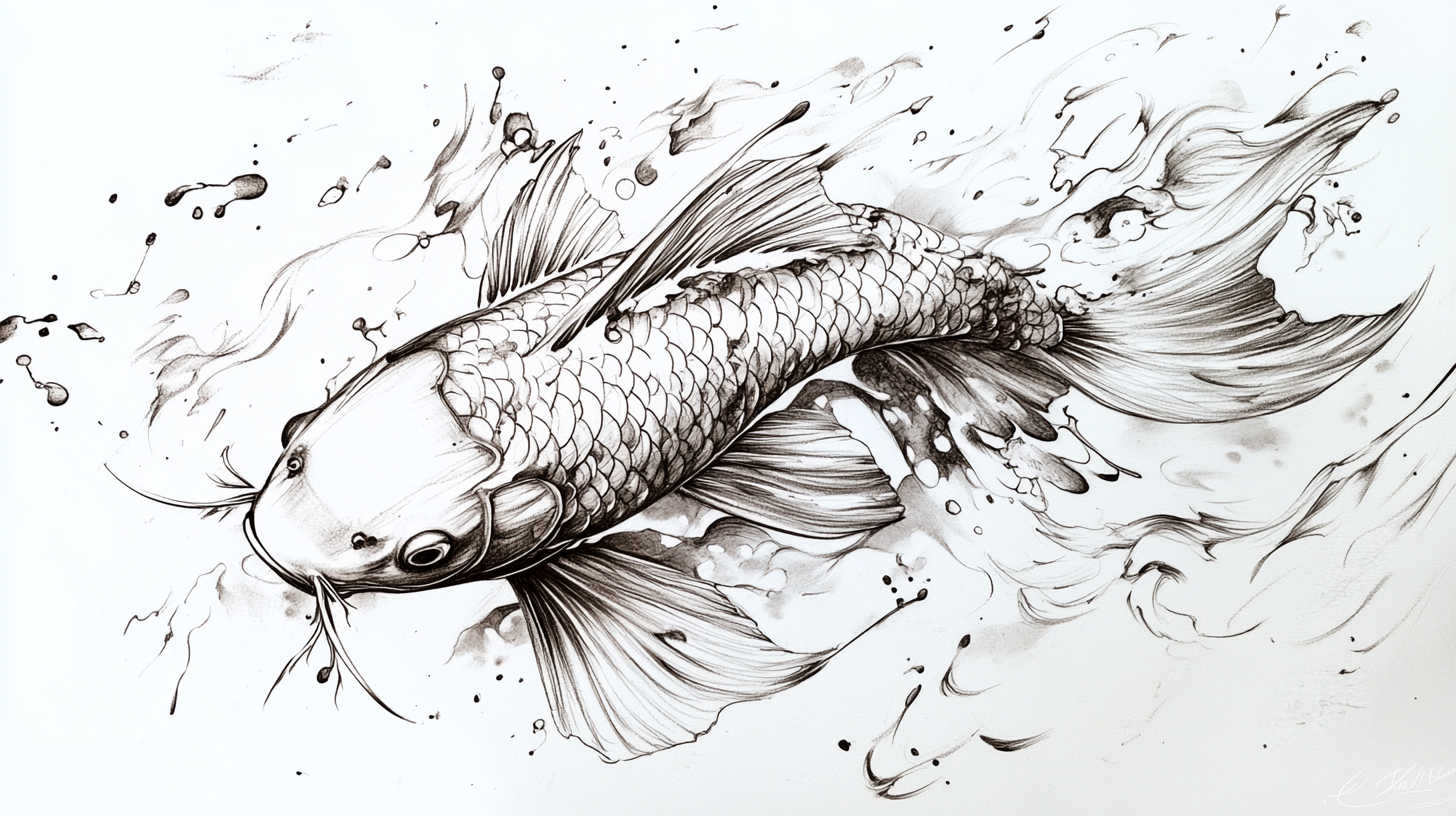 Koi Fish Tattoo Sketch 4K HD Designs