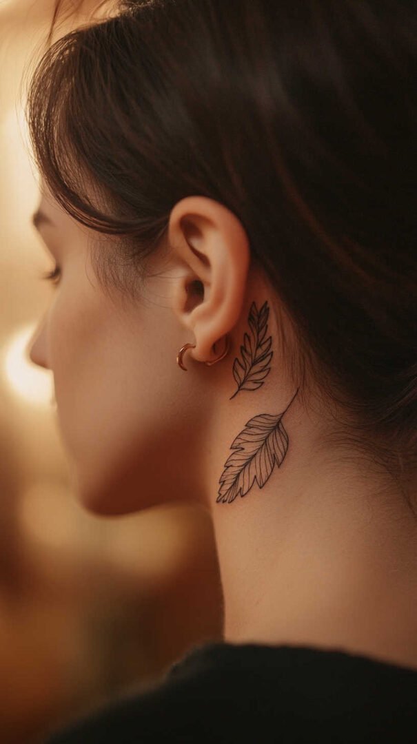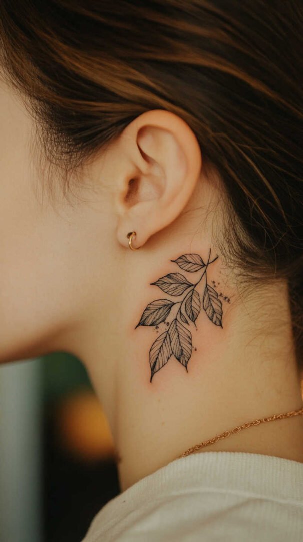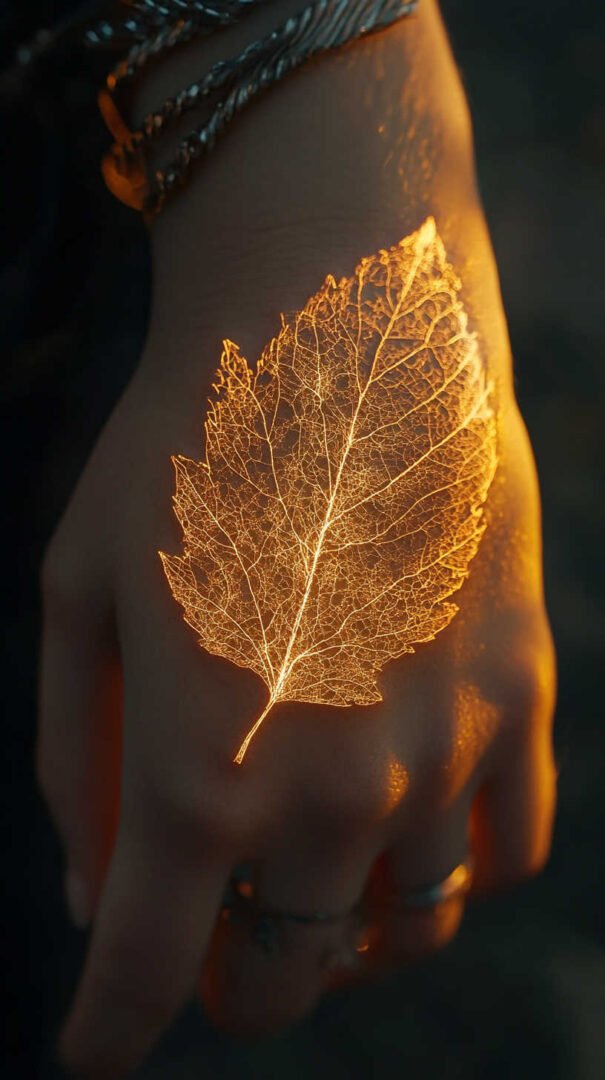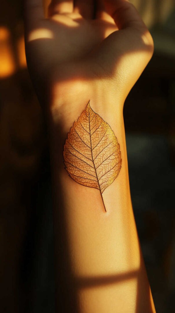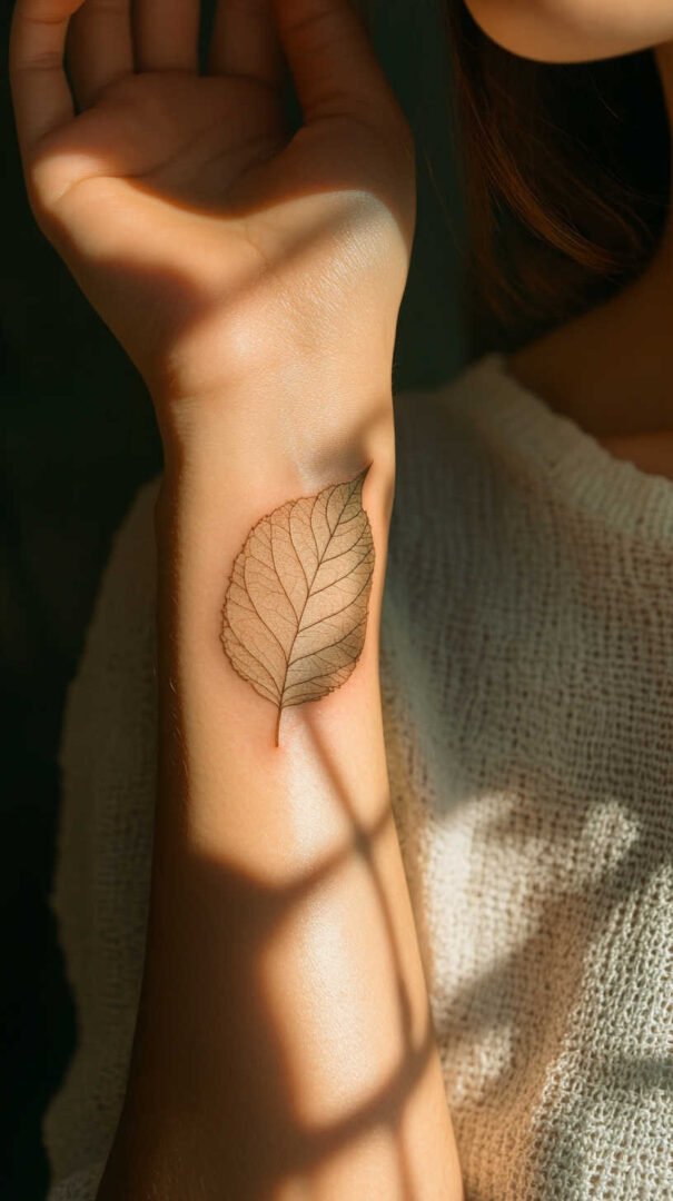 Placement plays a crucial role in how leaf tattoos enhance a woman’s form. Smaller designs, like a solitary leaf, thrive on discreet areas such as the finger, behind the ear, or inner wrist. These spots allow for subtlety, with 4K HD details shining in close-up views. The wrist, in particular, offers a canvas where the leaf can appear to “grow” along the vein, creating a natural integration.