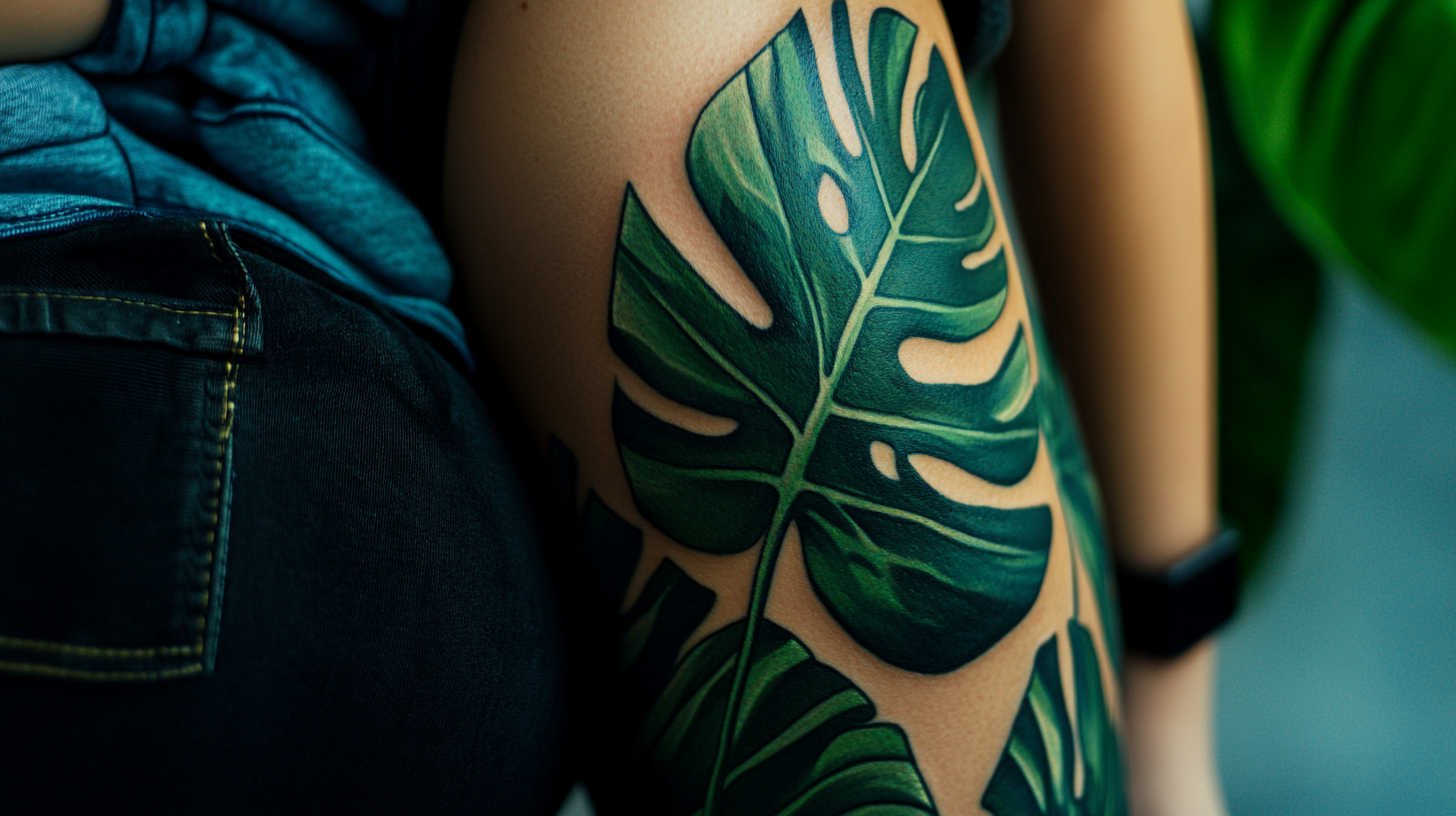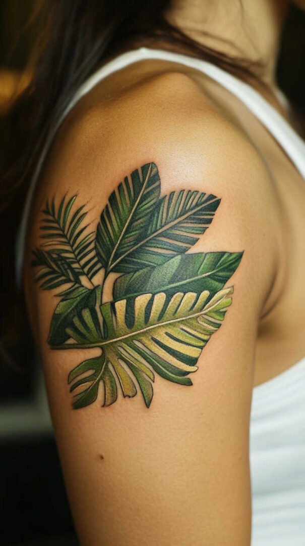 Tropical leaf designs, inspired by palms or ferns, bring an exotic flair. These bold patterns feature broad, fan-like shapes that command attention on larger canvases like the thigh or back. For women seeking vibrancy, these can include subtle color pops, though many opt for black ink to maintain elegance. High-definition techniques ensure crisp contours and depth, preventing any blurring that might occur in lower resolutions. This results in tattoos that look as if plucked from a lush jungle, exuding confidence and adventure.