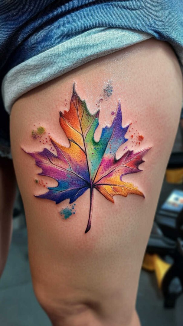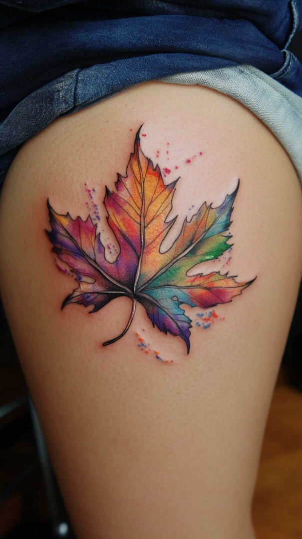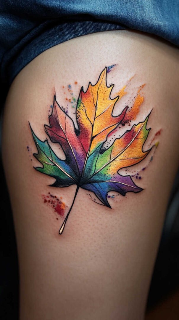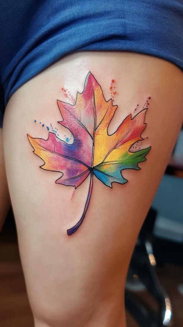 Watercolor leaf tattoos offer a softer, artistic approach, mimicking brush strokes for a dreamy effect. Blended hues create gradients that flow seamlessly, ideal for forearm or shoulder placements. High-definition captures the subtle bleeds and fades, ensuring the tattoo retains its ethereal quality over time. Women drawn to this style often value creativity, using it to express artistic souls through body art.