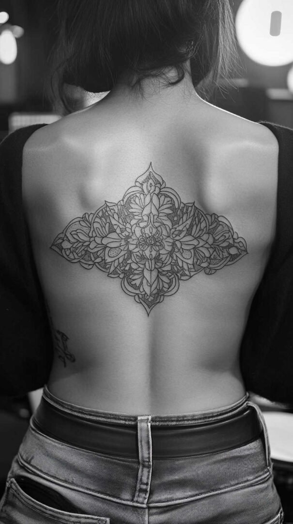 Geometric patterns offer a modern twist on lower back tattoos, appealing to women who prefer clean lines and abstract artistry. Mandalas, with their concentric circles and symmetrical shapes, are perfect for 4K HD designs, where every dot, line, and intersection is sharply defined.