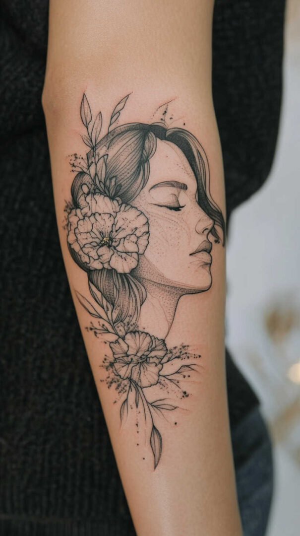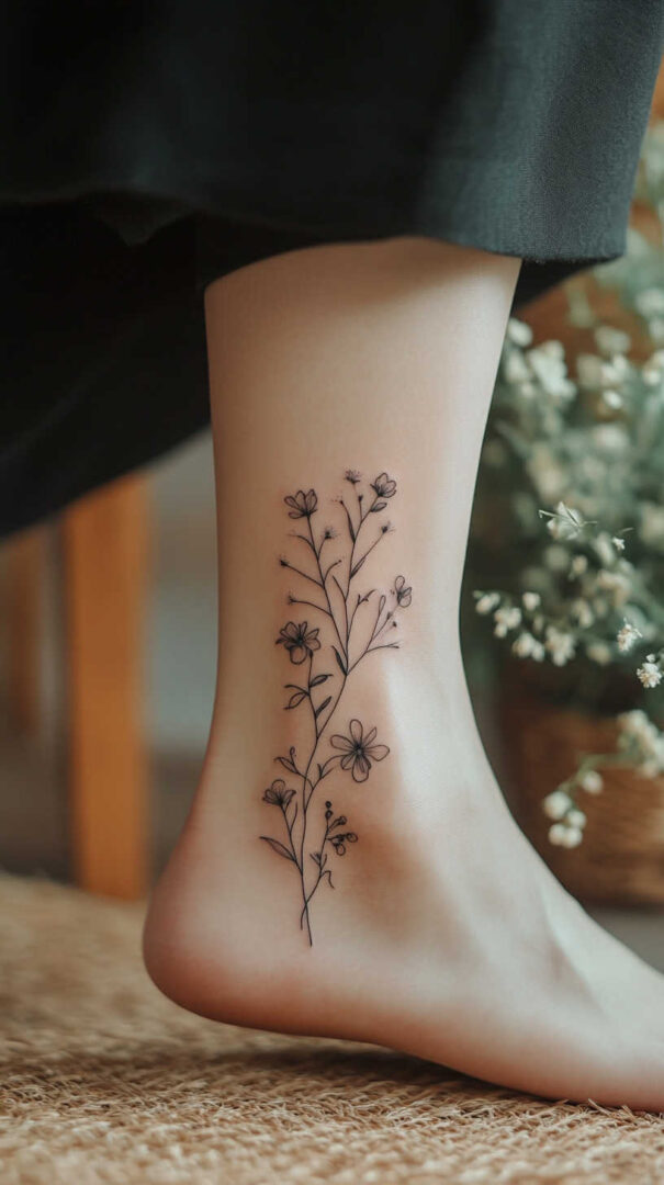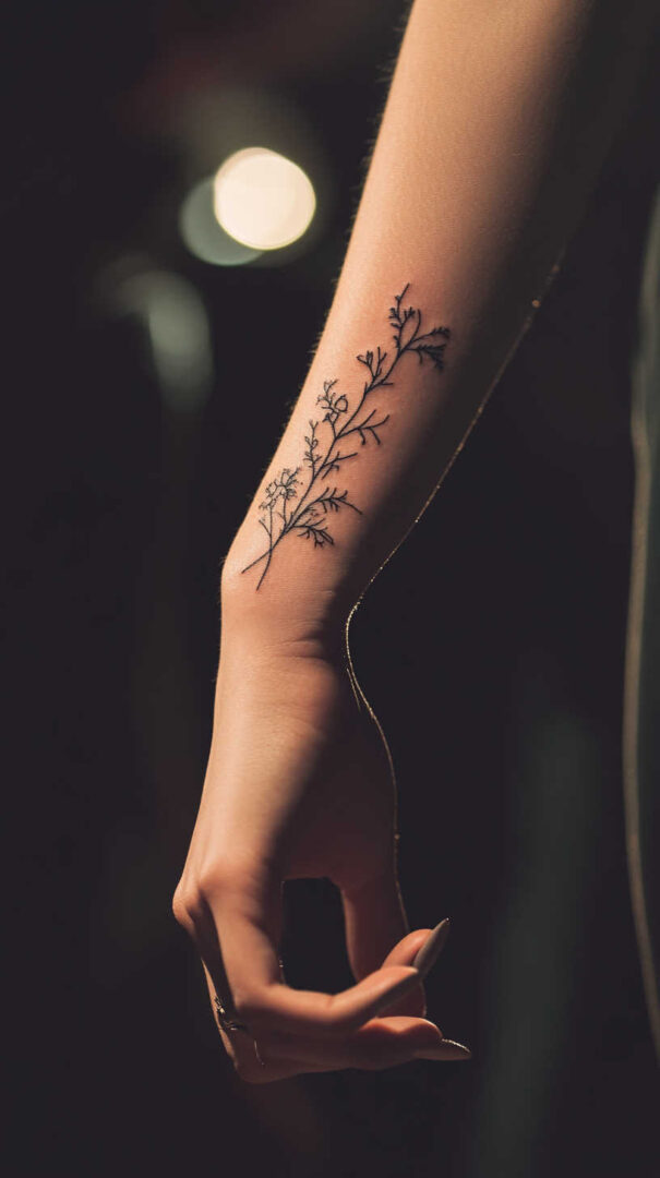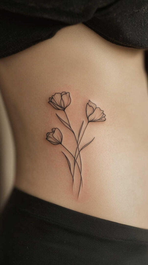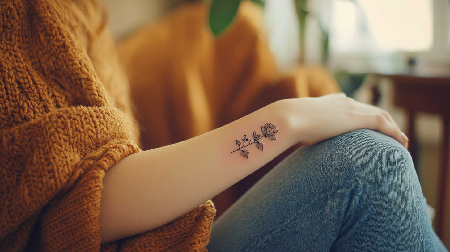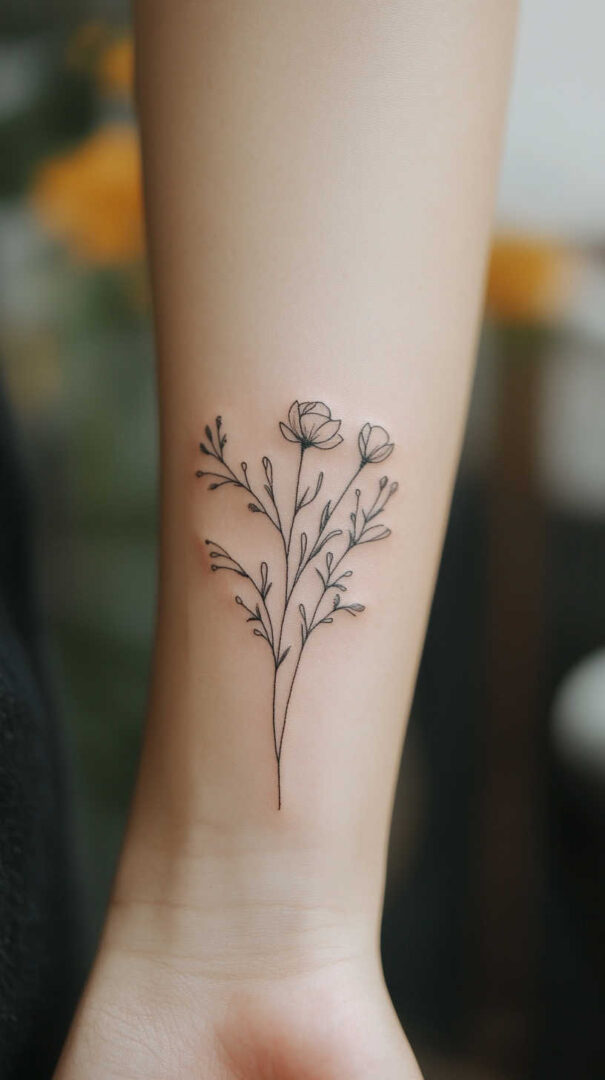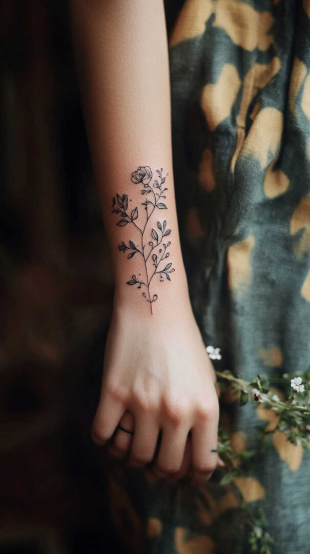 Floral designs dominate minimalist tattoos for women, symbolizing growth, beauty, and resilience. A single rose stem, delicate wildflower cluster, or birth-month bouquet captures nature’s grace in simple strokes.
