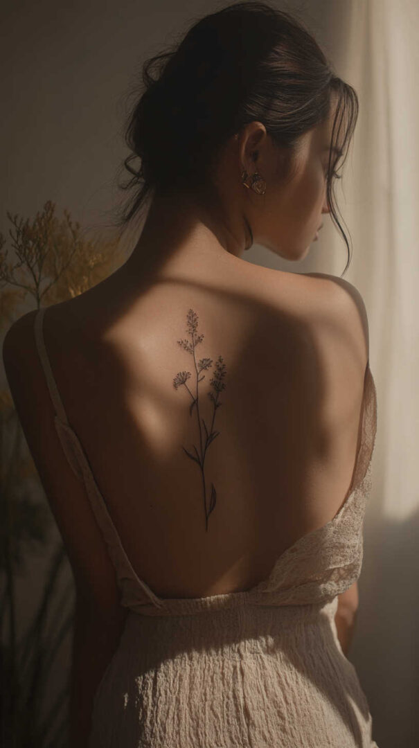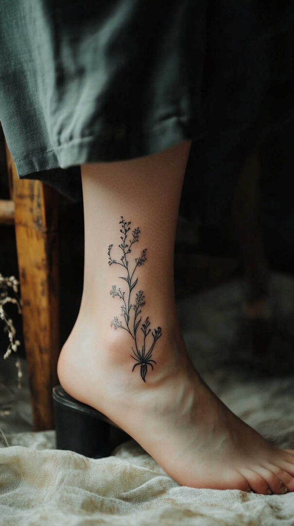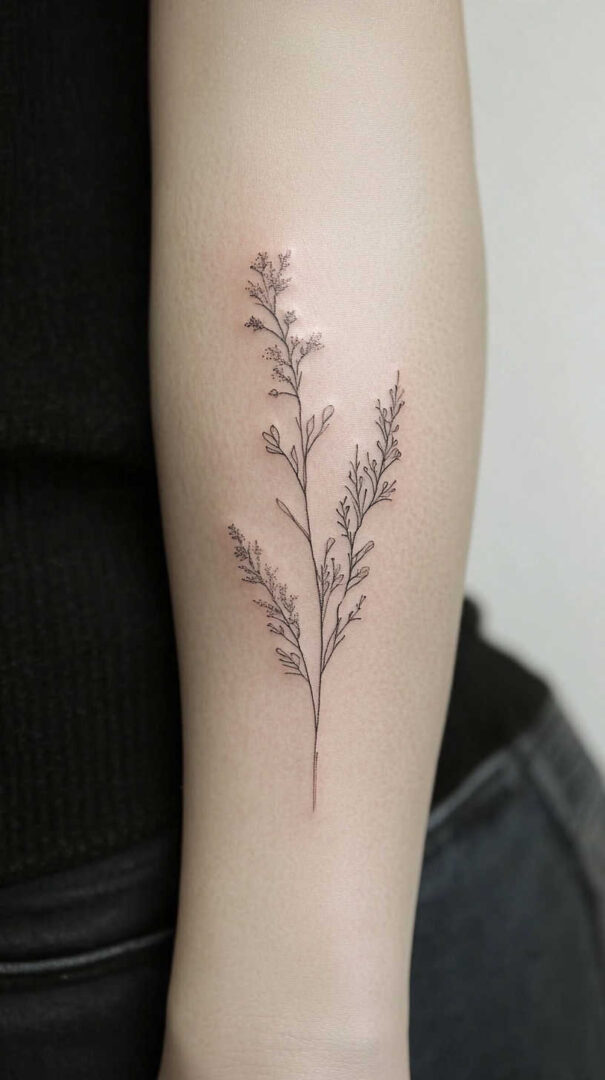 Tiny daisies, poppies, or lotus flowers represent purity and new beginnings. Line-art versions of lavender sprigs or eucalyptus leaves evoke calm and healing. These often trail along the forearm or ribcage for an organic flow.