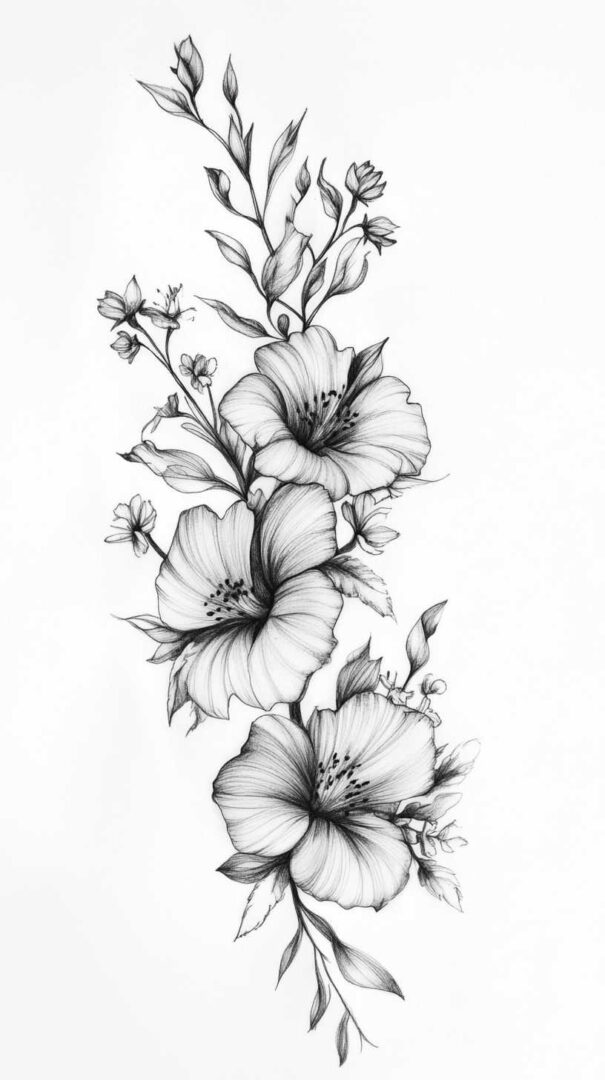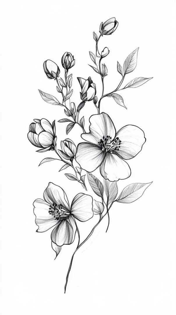 HD sketches preserve delicate petal edges, leaf veins, and soft organic curves.