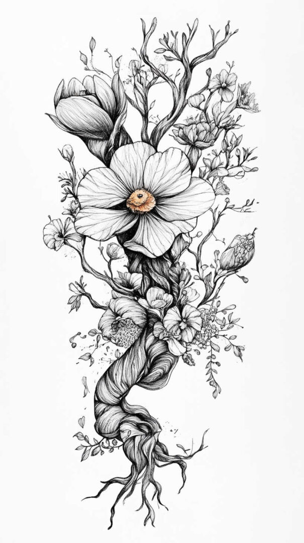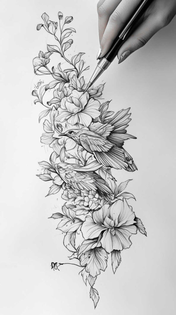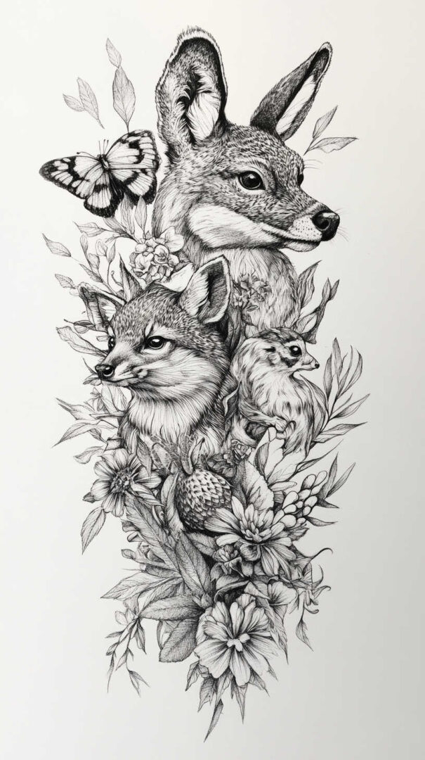 Nature tattoo sketches celebrate the beauty, power, and wisdom of the natural world. From majestic mountains and flowing rivers to ancient trees, wild animals, and delicate florals, these designs capture the essence of growth, resilience, harmony, and the interconnectedness of life. In 4K HD quality, sketches reveal exceptional detail — realistic tree bark textures, layered leaf veins, soft water ripples, mountain ridge lines, and subtle shading gradients — providing lifelike blueprints that show how nature elements will flow with body contours and appear dynamic with movement.
