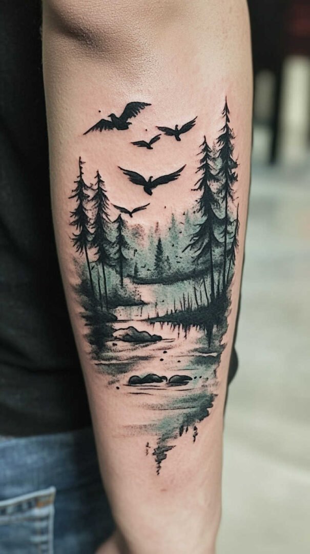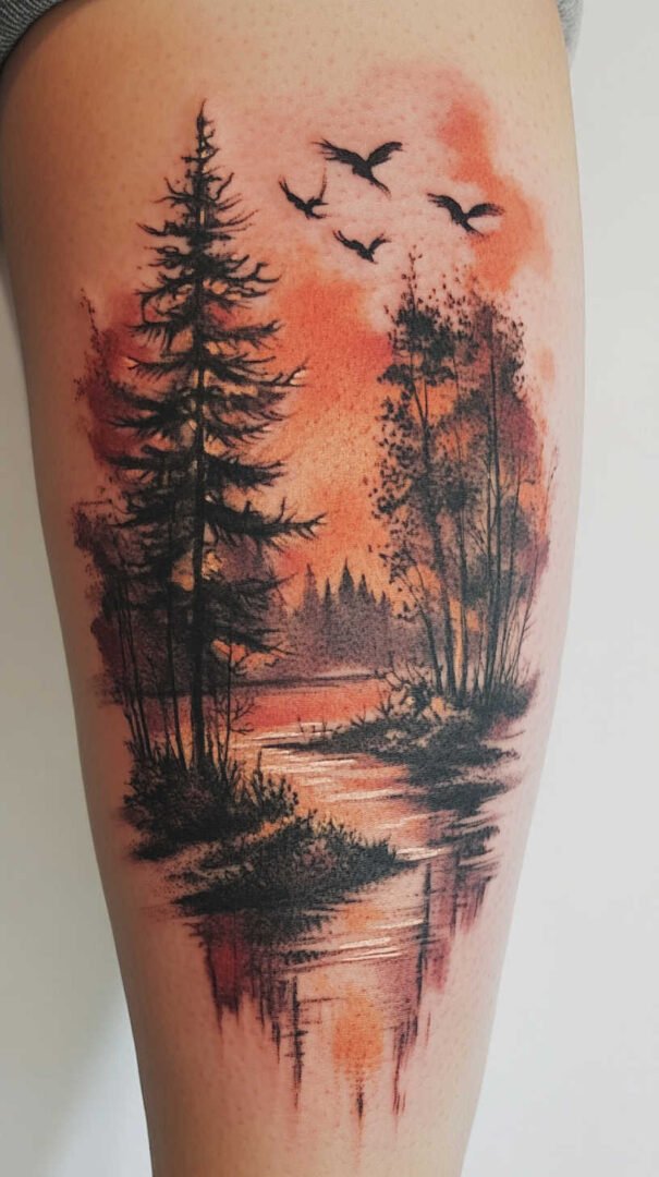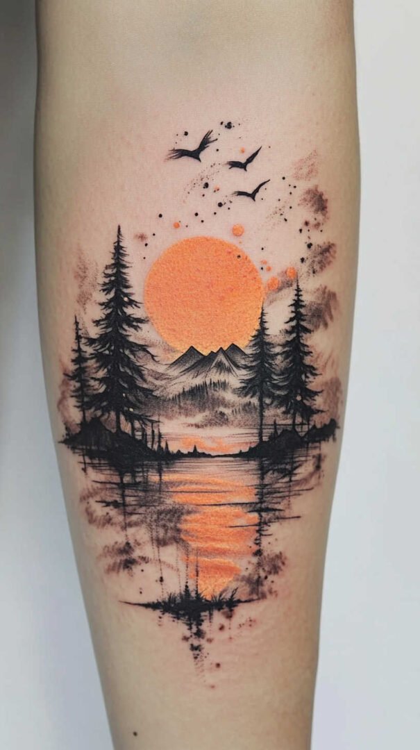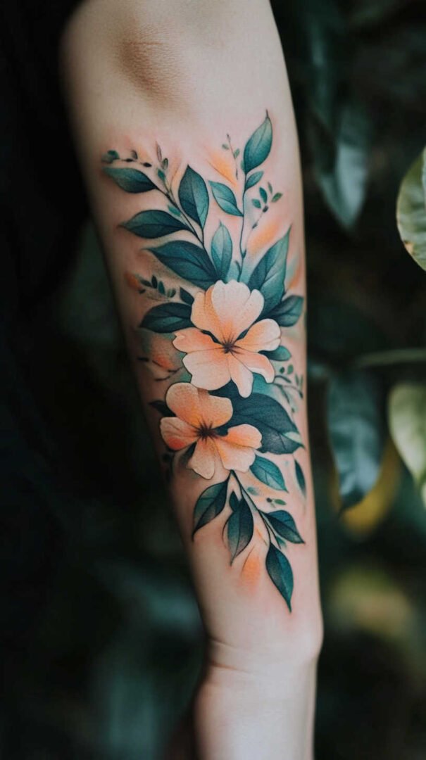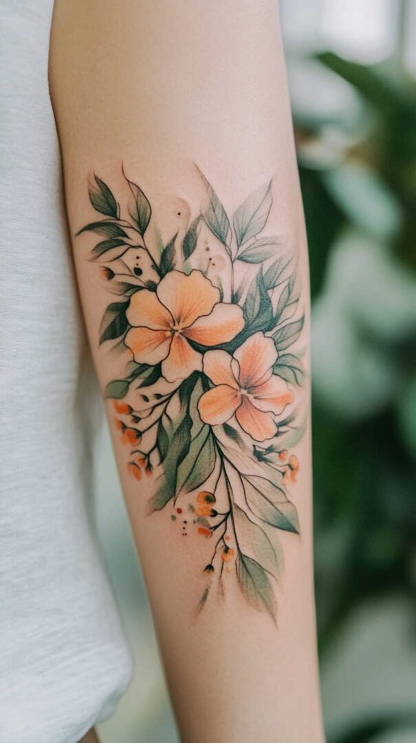 Blending soft washes with sharp details, watercolor nature tattoos in 4K HD feature blurred edges contrasted by crisp accents, like defined flower centers amid flowing colors. This style suits those wanting a dreamy, artistic feel.