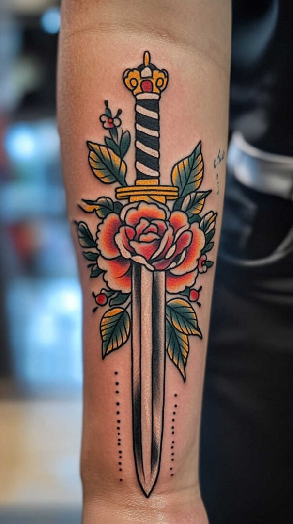 Color variations play a role too—swapping traditional red for a softer pink in roses or using teal instead of green for leaves to match personal palettes. Combining motifs, such as a swallow carrying a banner with a loved one’s name, personalizes the design further. This adaptability ensures old school tattoos remain relevant, bridging classic roots with individual expression.