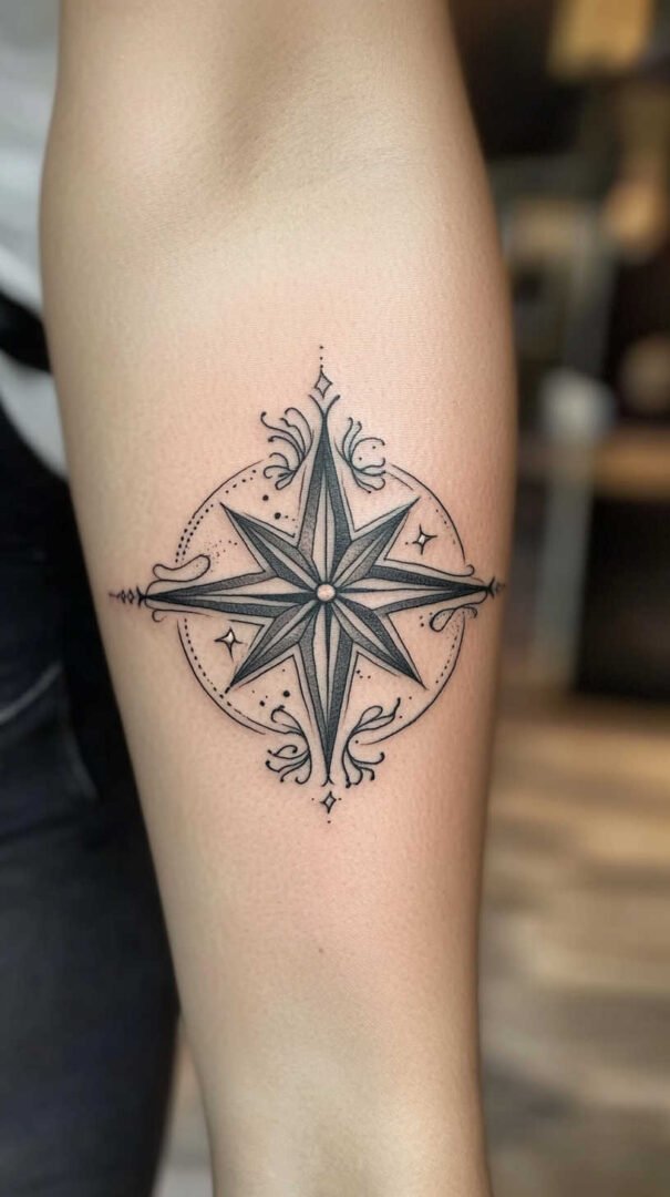 Daggers and swords evoke protection and courage, resonating with women who see themselves as warriors. A dagger through a rose might illustrate beauty intertwined with strength. Nautical stars guide the way, symbolizing hope and direction. For many, these tattoos serve as talismans, warding off negativity or commemorating triumphs. The bold style ensures the message is clear, while HD rendering makes the symbolism pop with visual intensity.