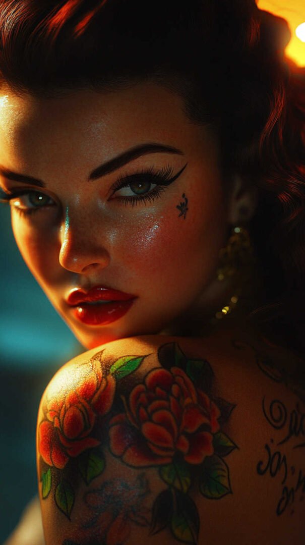 Exploring variations, pin-up girls embody vintage charm, often depicted with rosy cheeks and flowing hair. In old school style, they’re bold and empowering, celebrating body positivity. Mermaids, half-woman half-fish, symbolize duality and allure. HD details enhance scales and waves, making them mesmerizing.
